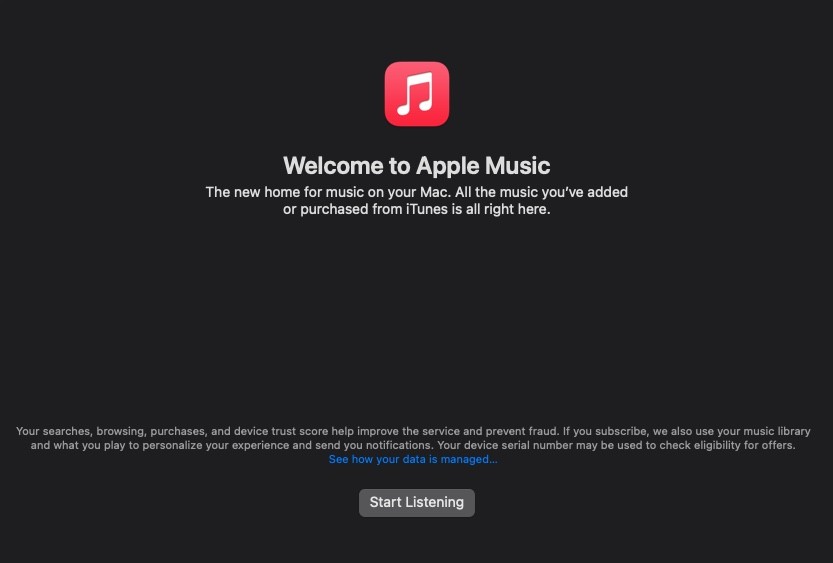 I opened iTunes today, but a Welcome to Apple Music popup appeared. I haven't subscribed and can't get rid of it, to listen to my music.
