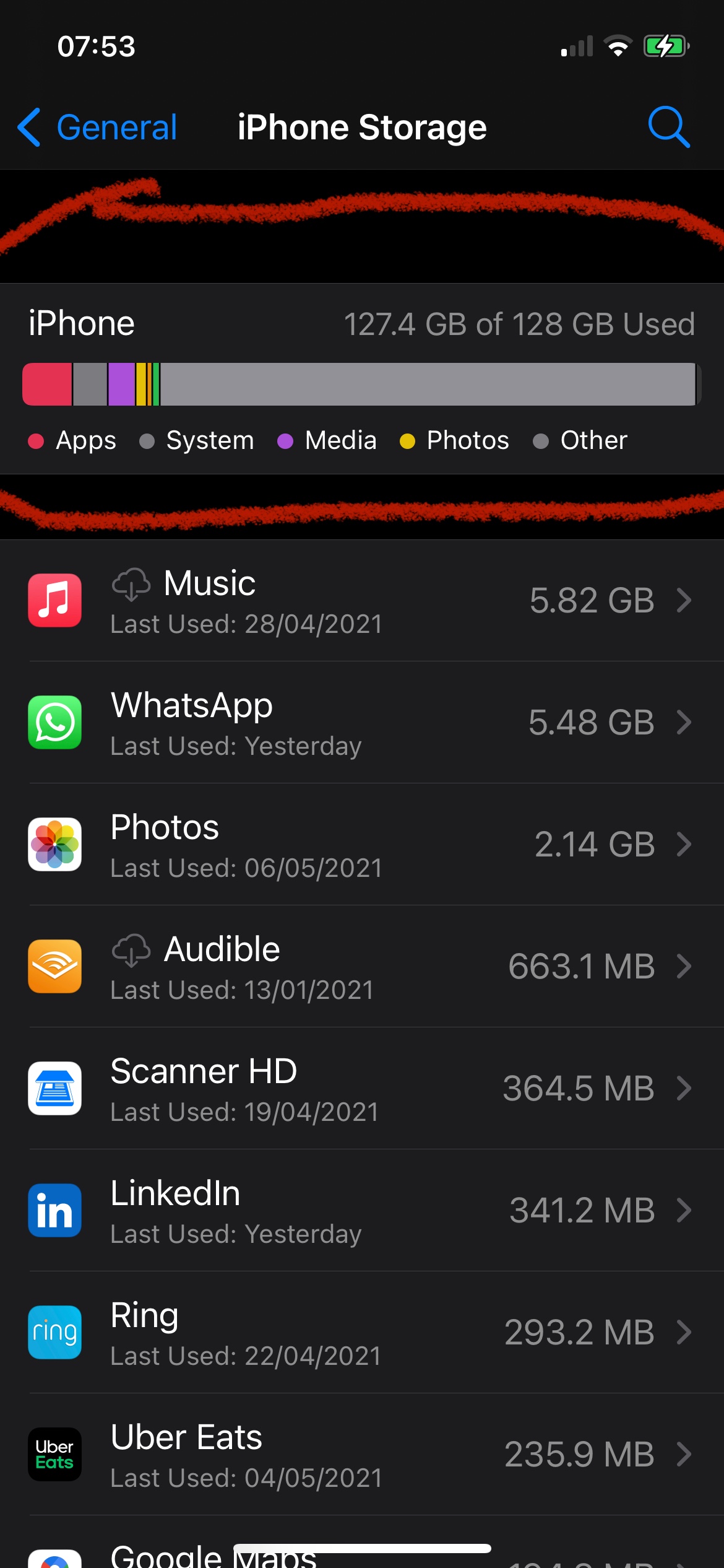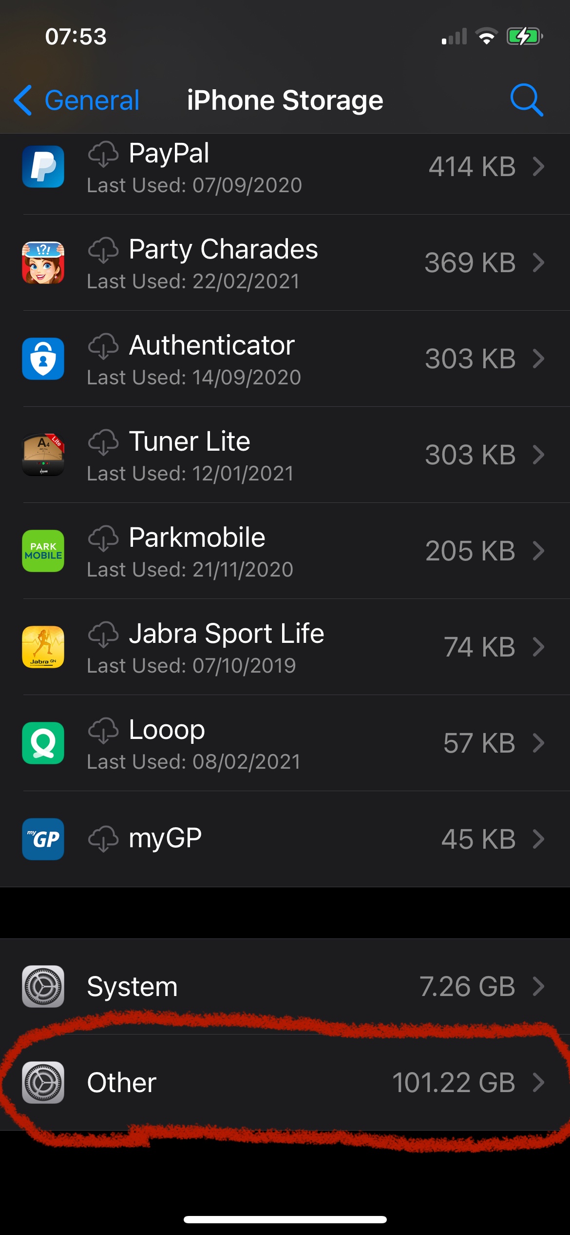 My iPhone storage is taking up all my storage. I have available storage of 127.4 GN. My normal activities are fine (apps/music/photos) but ‘other’ is taking up 101.27GB. I’ve cleared my internet history but I don’t know what else can be using this much space.