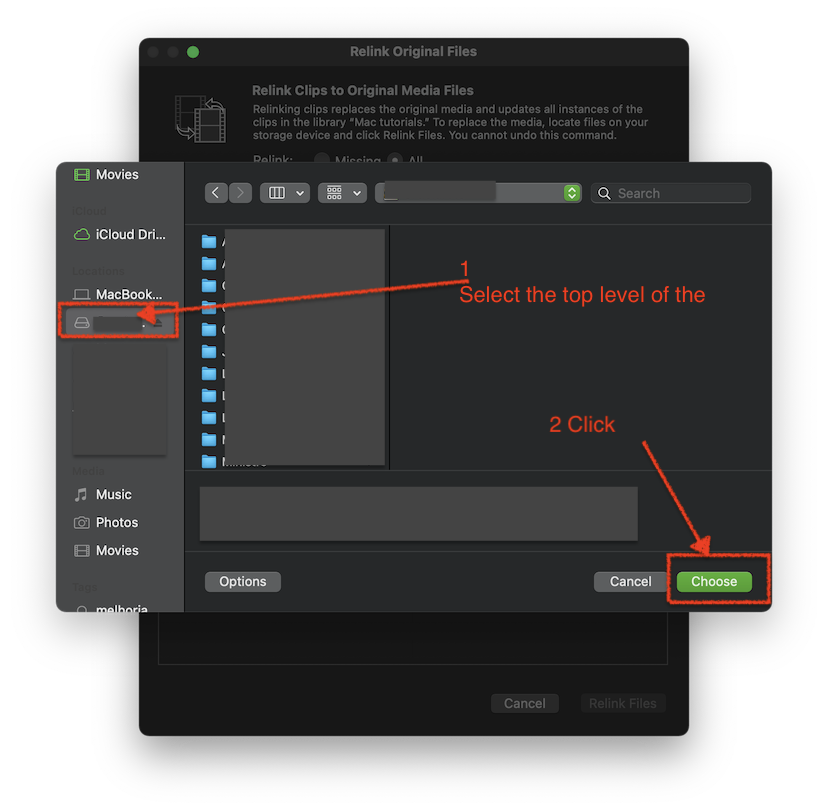 Select the top level of the new drive and click Choose