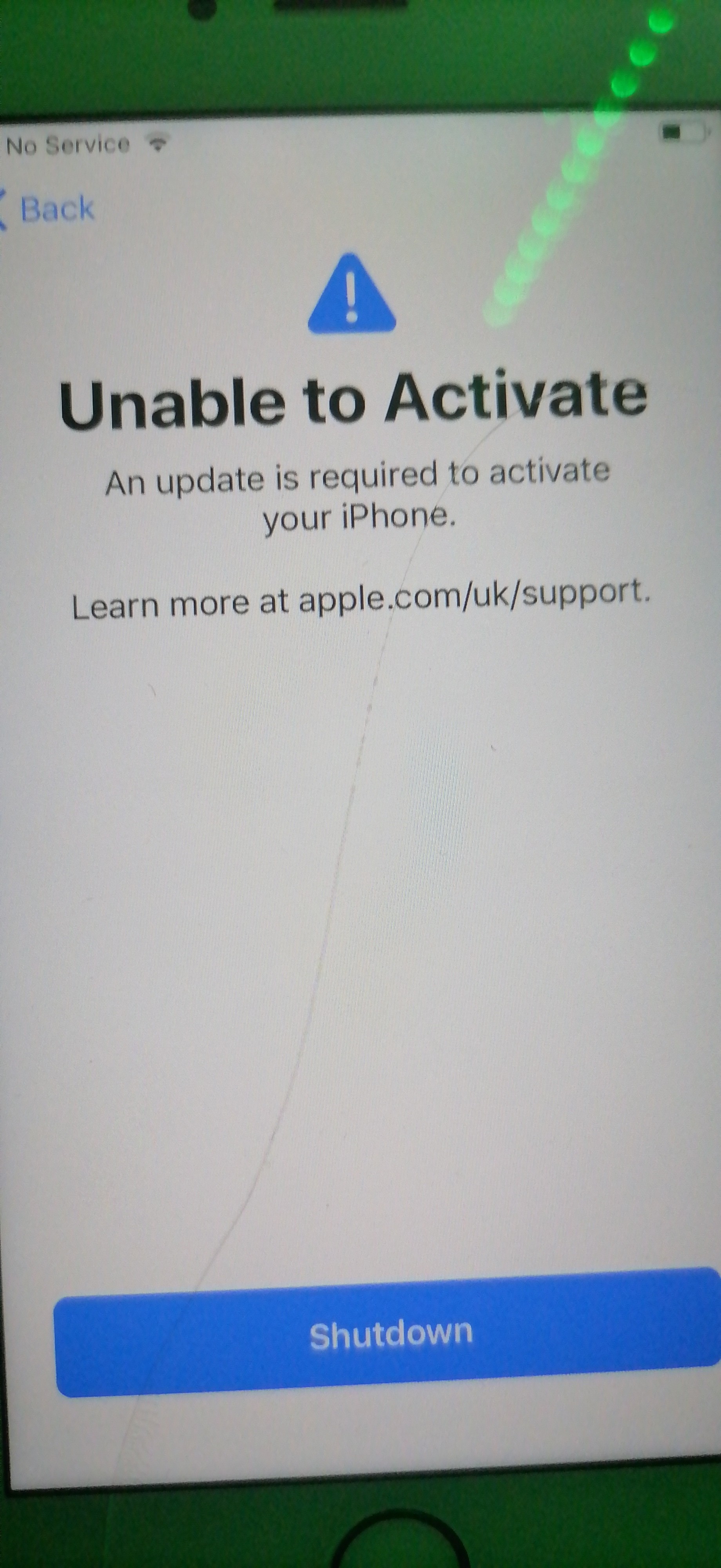 it tells me (Unable to activate an update) is required to activate your iPhone