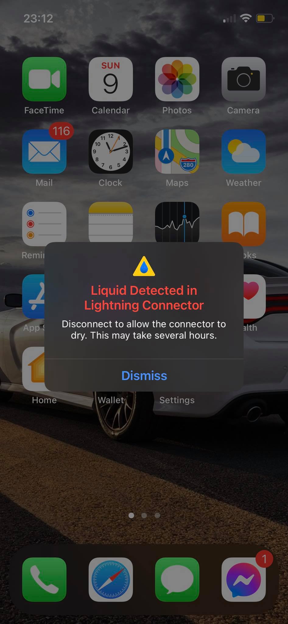 "liquid detected in connector lightning: I have a problem with my phone, it shows me a problem with the ligtning socket that is wet. The phone had no contact with water. When the charger is disconnected from the power supply, the message is displayed all the time"