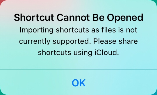 Hi there. I have some .shortcut files located in my files app that I would like to import into the Shortcuts app. Is there any way that I could do so, as i just get the prompt that it ‘cannot be opened.’ I would appreciate any help given. Thanks in advance. I have attached a screenshot of what happens when i try to open it: