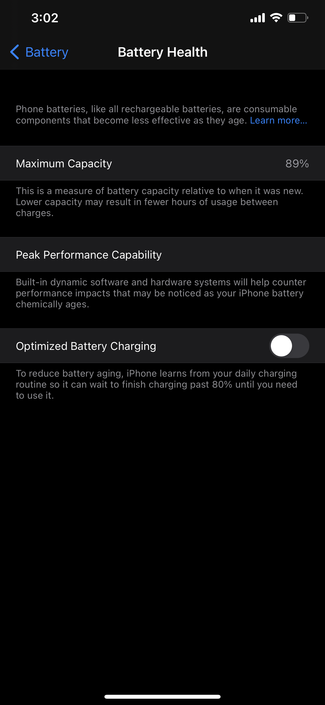 Note: battery replacements are generally recommended when the battery health falls below 80%.