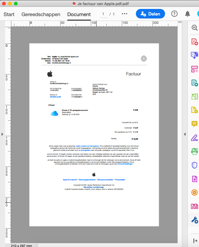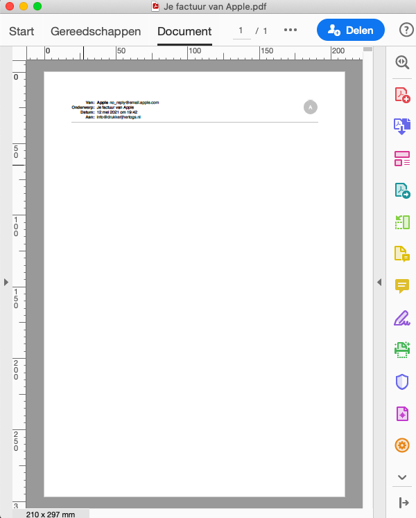 Cannot print the Apple invoices. Invoice from apple should be send as an attachment!