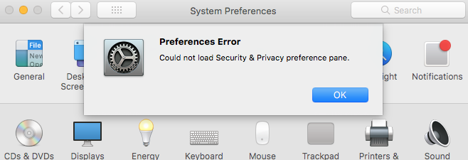 Can't load preference panes High Sierra after uninstalling Mojave with Mojave patch on HD Partition.