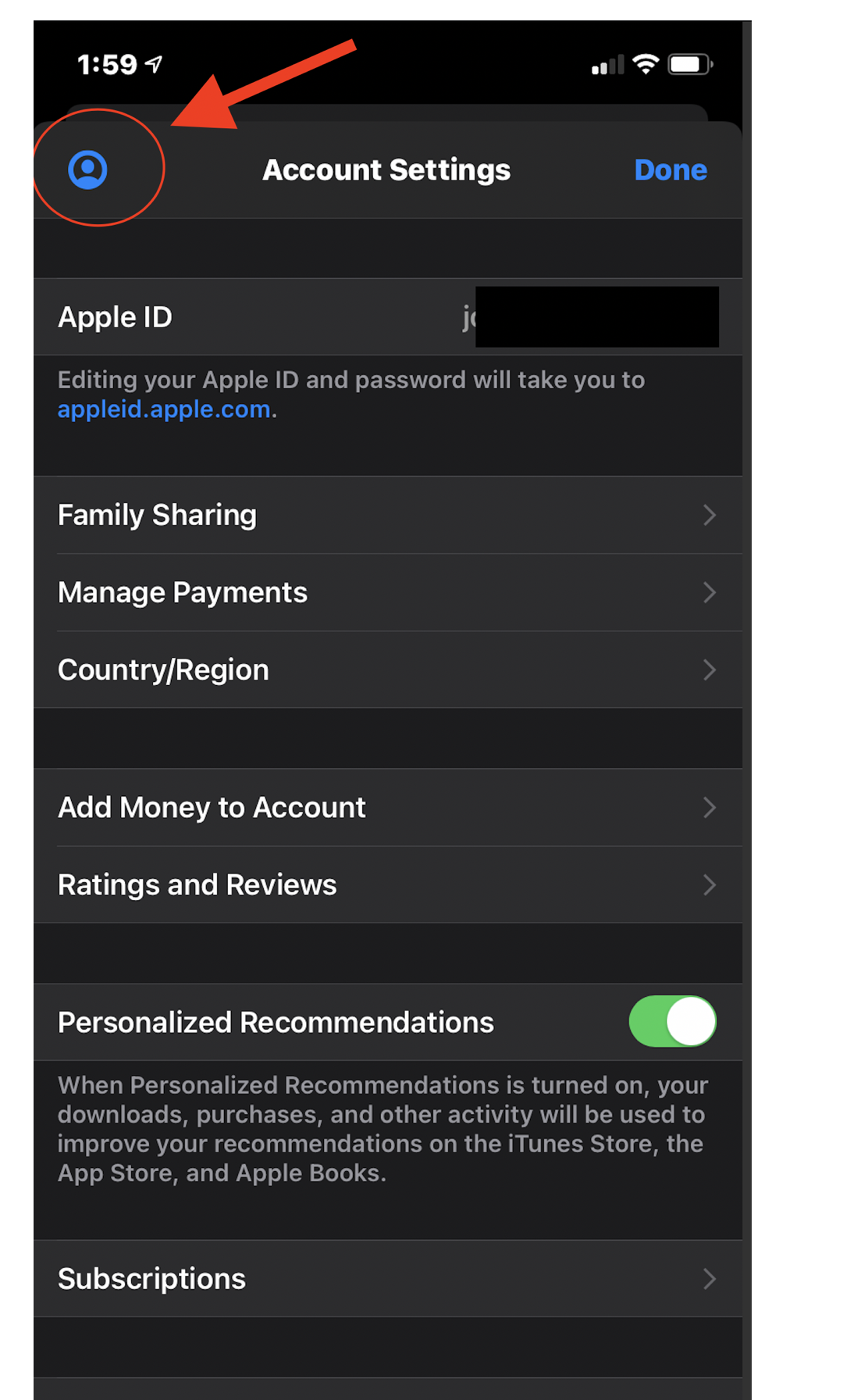 If running IOS 14, go to Settings>Your Name>Media & Purchases. Click the portrait at the top left. That should allow you to sign into the App Store/iTunes using an Apple ID.
