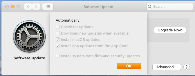 I can't turn off Auto update in the Software panel of System Preferences. And the options to check for updates, download, install, etc are locked. I'm an administrator on this Macbook Pro and I also tried the local admin account, but same result.