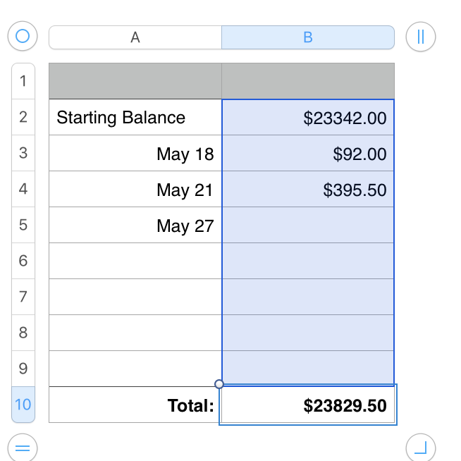 Hello. I am attempting to create a savings table in the numbers app. I FIRST added the total amount of current savings that I have on the footer row, then I started inserting the amounts I have saved above my current total savings in the same column. The total current savings in the footer row will not sum the amounts saved I am adding. Any suggestions?
