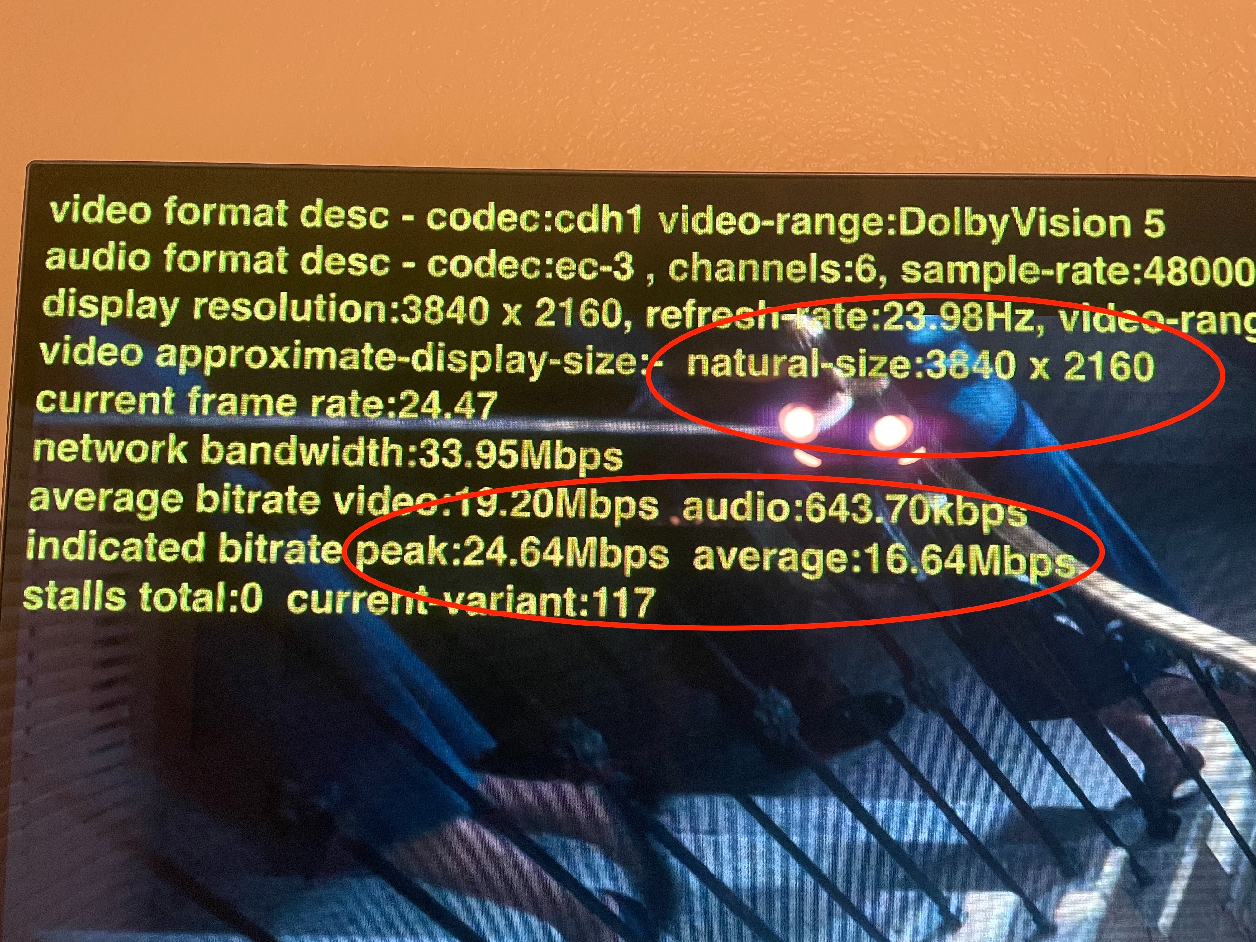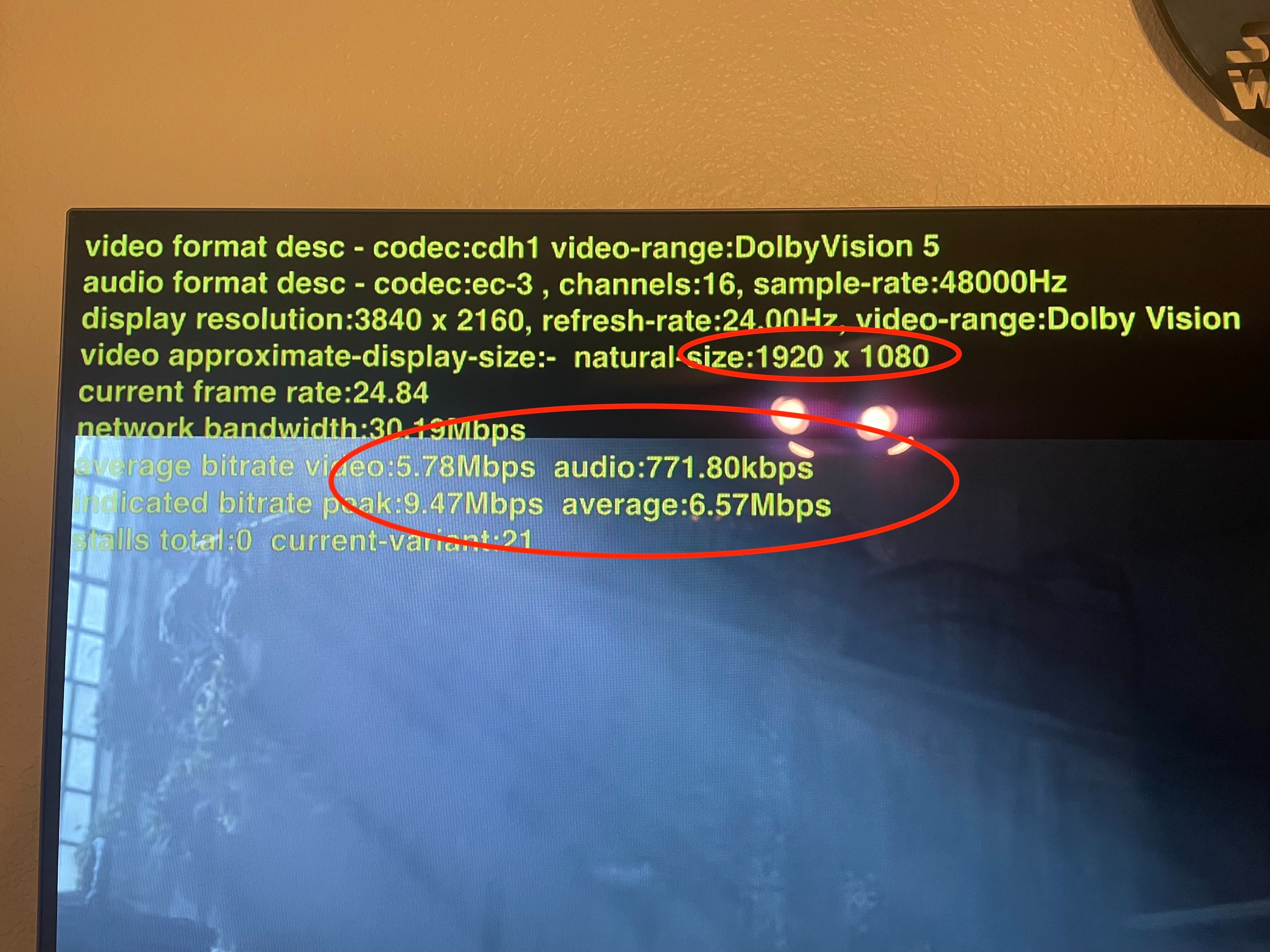 Since then I have played with all of the settings on the AppleTV to get this "fixed" but with no positive results. I finally started testing a theory that the AppleTV is actually playing the 4K stream, just the badge isn't right because the stream still looked good to me and because the TV flashes up either the Dolby Vision or HDR label when the stream starts from Netflix or Prime even though the info pulldown only shows HD and no mention of HDR or DV. Because the AppleTV upscales to 4K, my TV always reports 4K even if it is a title that is only available in 1080p. So I switched the max resolution on the AppleTV to 1080p and when I did that the TV of course only reports 1080p, but the Netfilx app shows only an HD badge on the title page of a 4K title. When I switch the max resolution back to 4K the 4K label (or the Dolby Vision label) returns on the title page. In both cases the info pull down in the player only displays the HD badge even though the played stream looks much better with the max resolution set to 4K. This of course could be because the AppleTV is no longer upscaling, so I tried to think of some other test.
