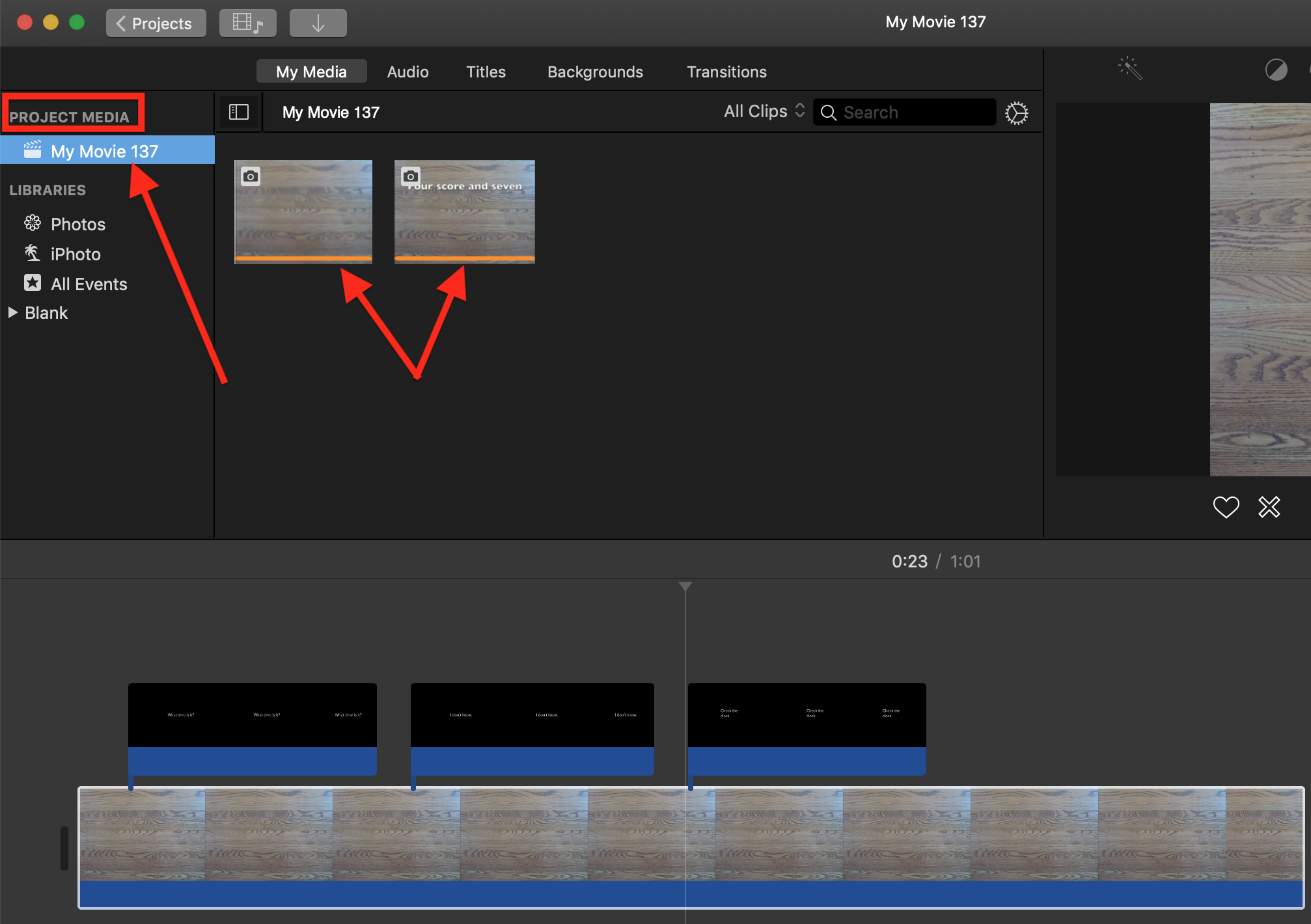 I'm not running version 10.2.3, but the iMovie Help menu states that: "Video that’s been added to a project is marked along the bottom with an orange stripe in the browser, so you can see at a glance which video you’ve used. You can add the same video to as many projects as you like. " I am assuming that it is the same in your version, but would have to defer to someone who is actually running 10.2.3. .