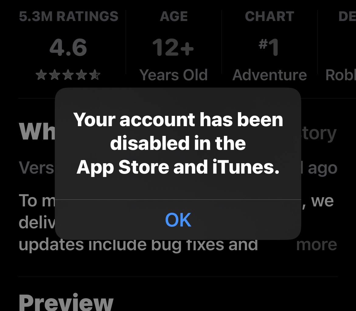 "If your account has been disabled in the App Store and iTunes Store