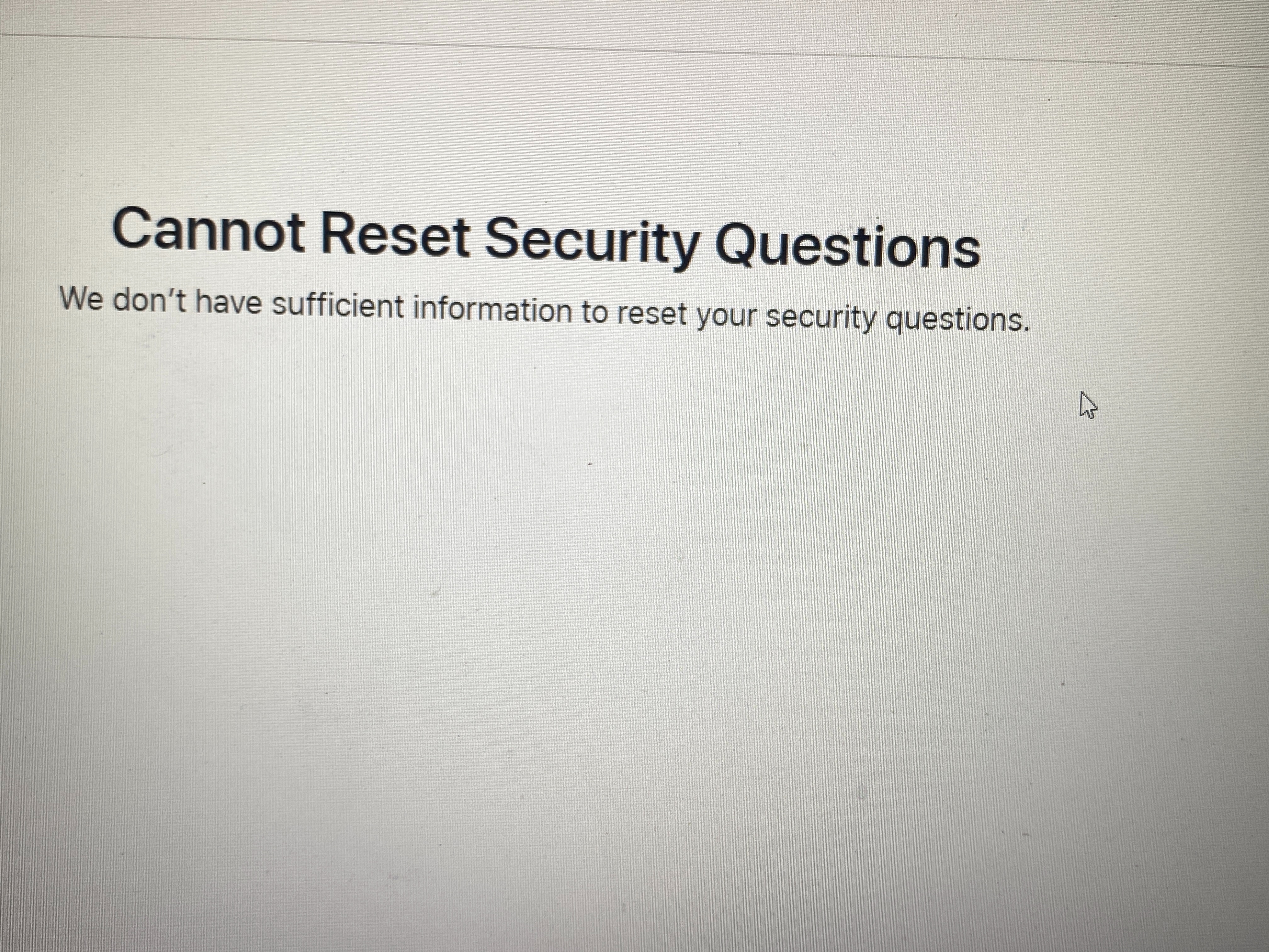 I am tried to reset my security questions but it say that don’t have sufficient information to reset your security questions