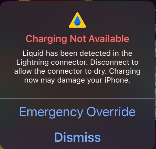 During charging, the attached message popped up on 2 different occasions. The phone wasn’t close to liquid or anything damp. My battery’s health is at 88%. Why is that message coming up? Is there a problem with the system or the battery?