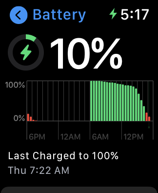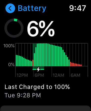 Last night I charged the watch before going to bed. When I woke up, the battery charge level was at 6%!