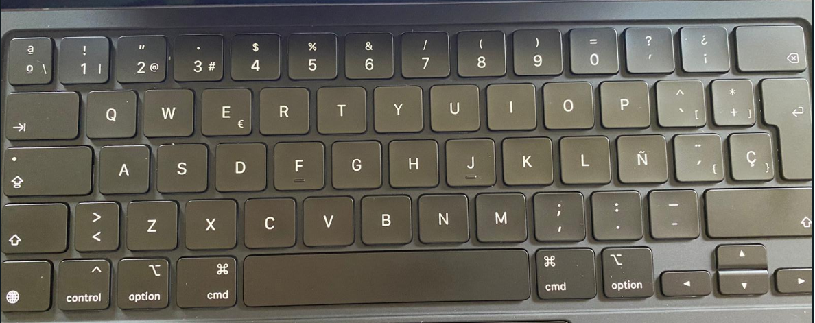 By the way, your keyboard is the Spanish ISO model. For the printing to match output, go to settings > general > keyboard > hardware keyboard, tap over at the right edge, and make sure "Spanish ISO" is checked.
