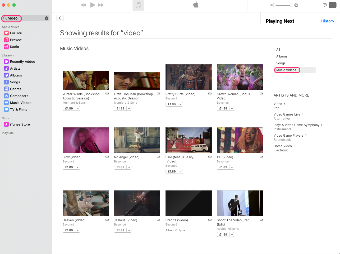 I do not see any music videos in the itunes store that i can click on & purchase.