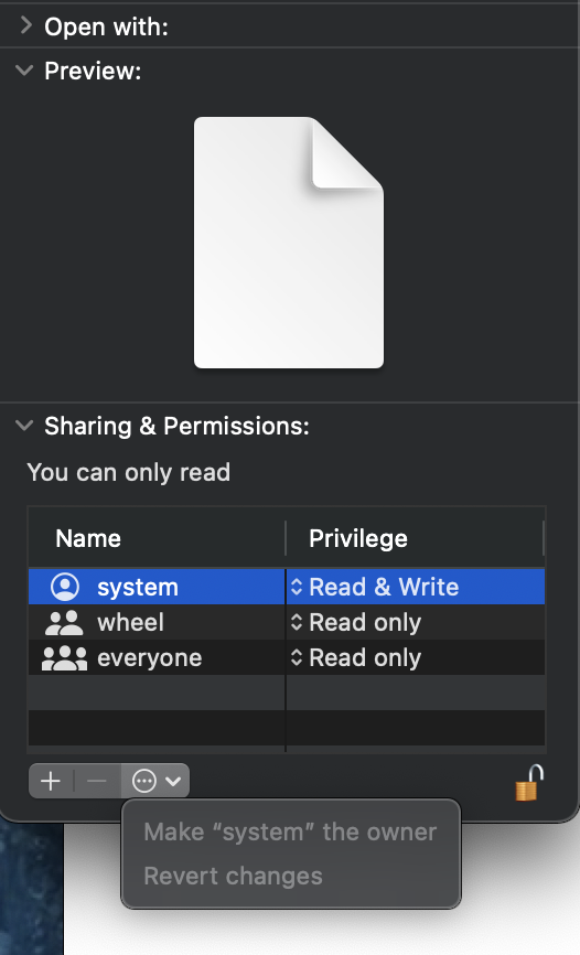 I need to delete a file, but it's not letting me do it, so I headed over to my internal hard drive and checked the permission there, saw that I was read only but I can't change it no matter what I do. So I went back to the file that I want rid of and still nothing works. Can anyone suggest how I can get around this please ? These are the screenshots of what I see
