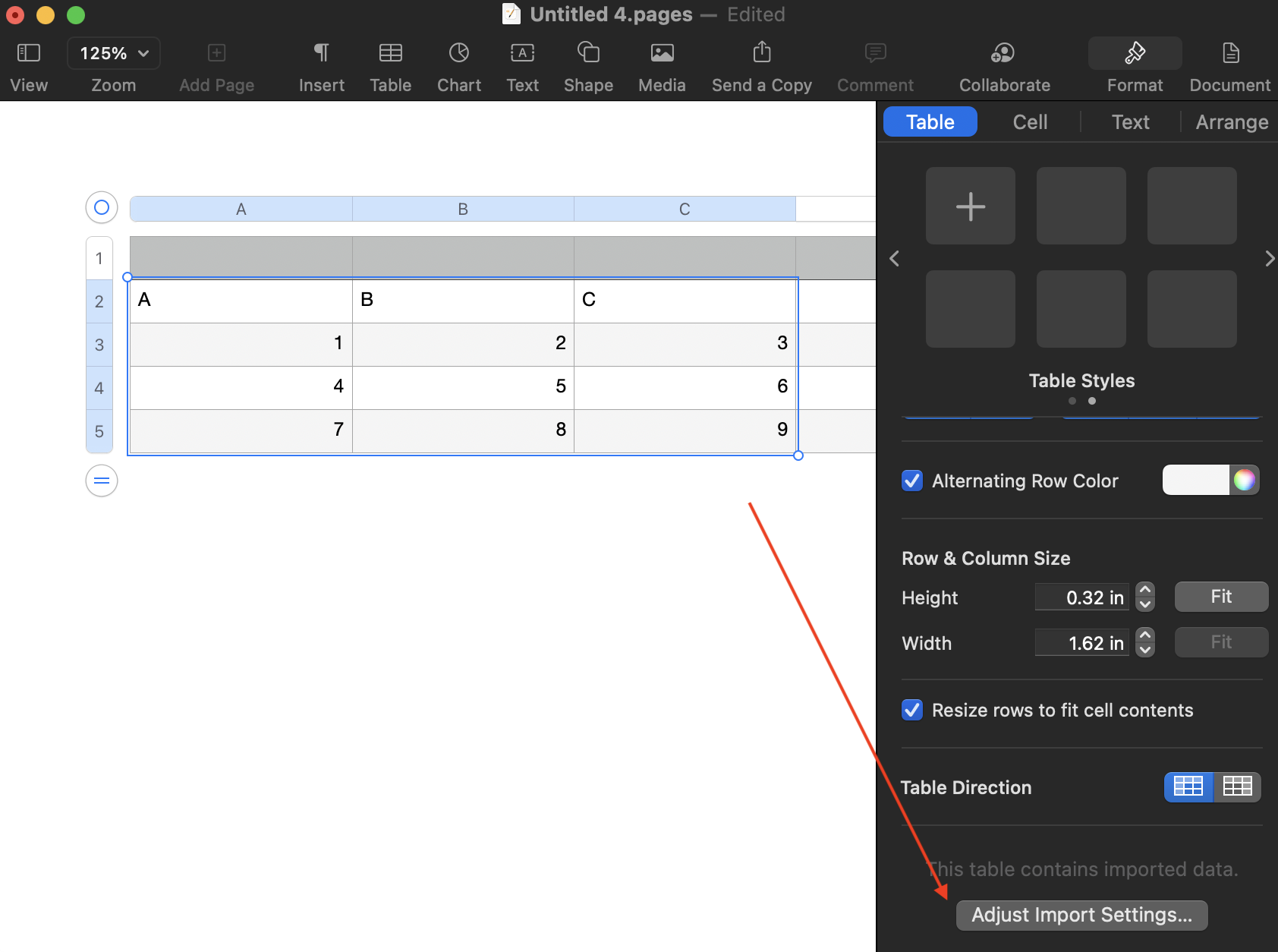 Pasting Delimited Text into Tables in Pages 11 (and Numbers 11)