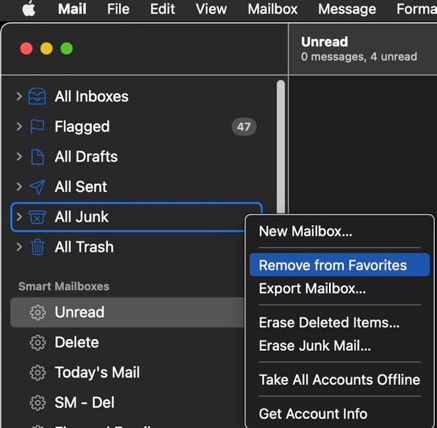 I got many Junk mails and they show up on the mailbox list counter in the macOS Mail app. I do not want any counter for Junk mail like I do not want to be notified by them at all. I added a picture for clarifying the problem. I do not want that 1 number near Junk Mail.