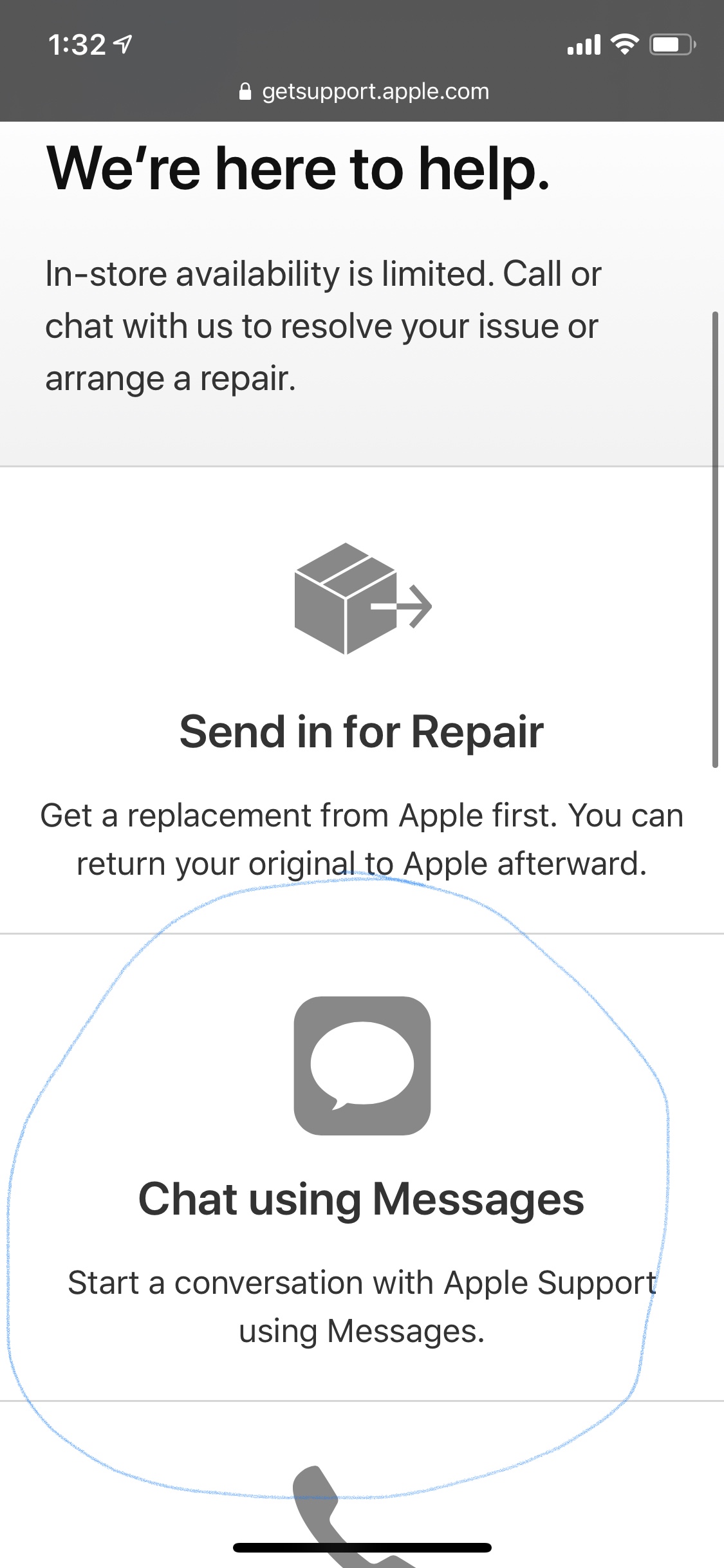 Once it takes you to the next page, if you scroll down there will be an option to chat with iMessage, click that and it will redirect you to iMessage. Hope this helped! Refer to the below images for assistance.