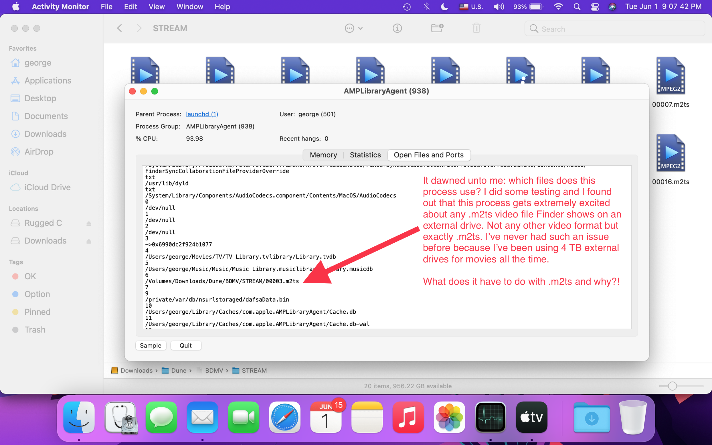 Can’t eject external drive. AMP Library Agent takes 90% of CPU
