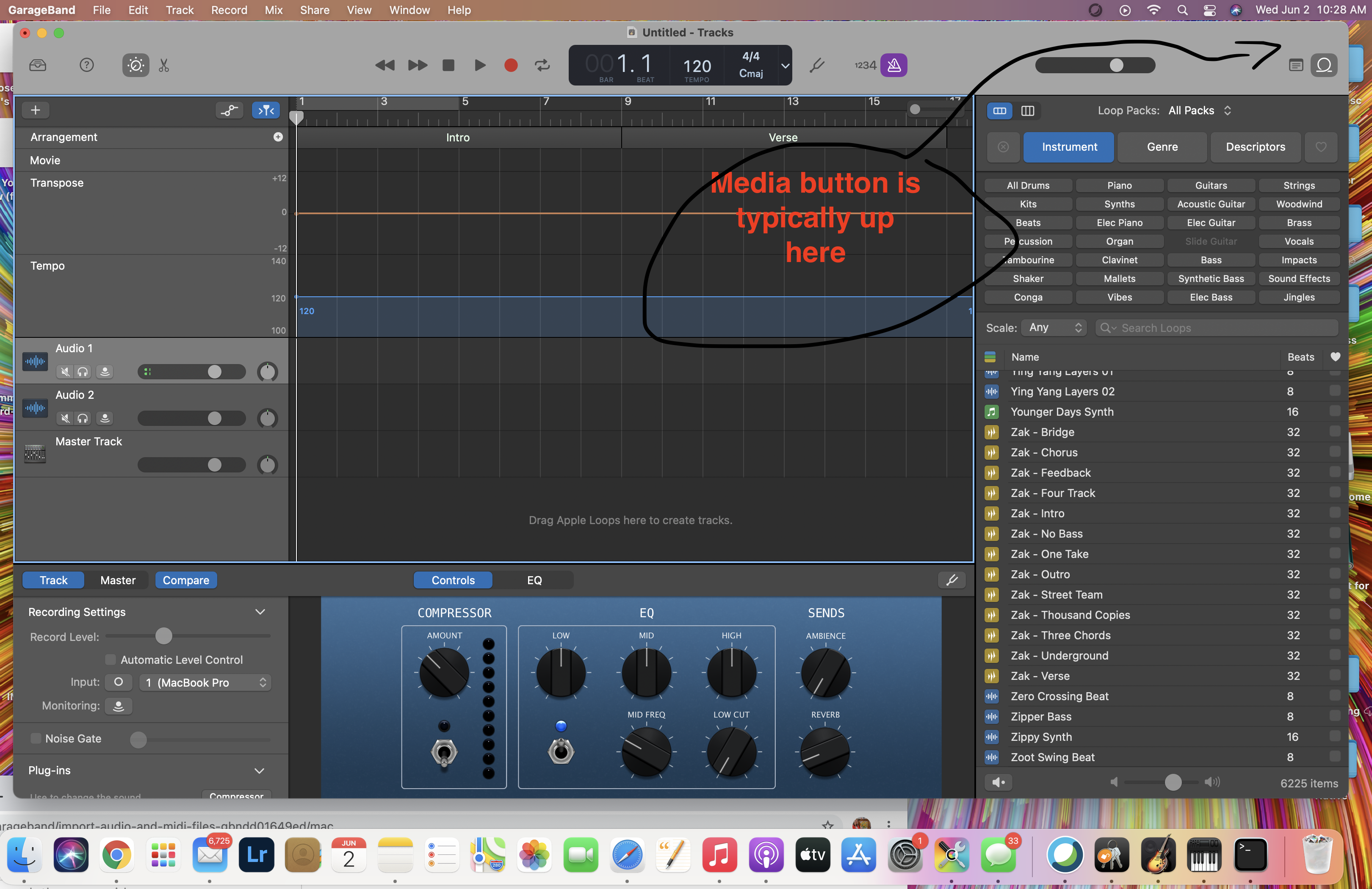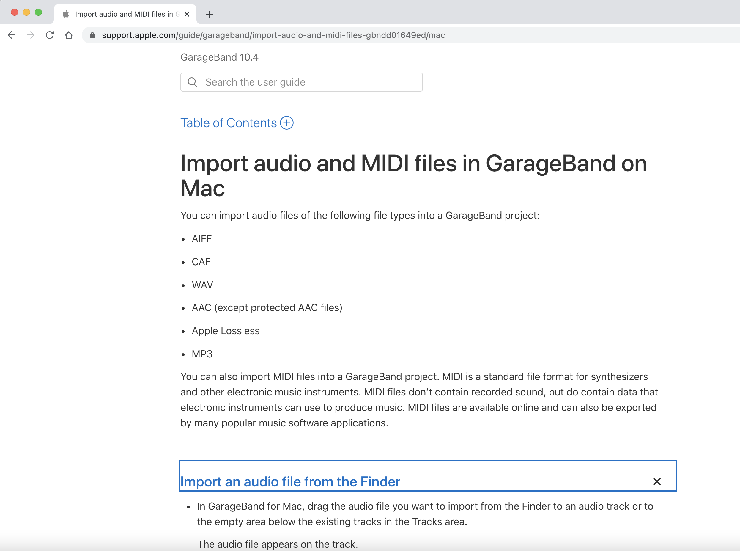 MacBook Pro with macOS BigSur and have Garage Band 10.4.3 installed. The media button for importing songs is missing. I have read that you simply find the file and drag the file into the track section. But this isn't working for me. The song file is .m4p. I noticed that isn't one of the listed file names they mention on Apple. Im not sure how to covert the file (if I really need to) to be able to import a song. Im trying to cut and slice a song from my Music app. Please help!!!