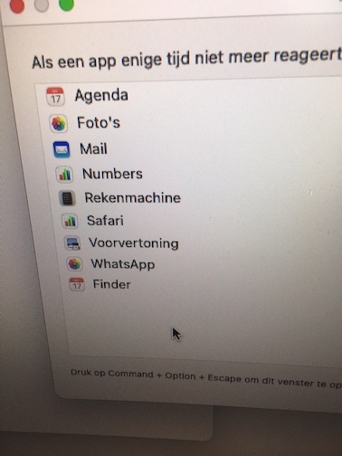 A friend's iMac under Big Sur becomes slower and slower. Programs become slow and react only after several seconds. He has tried to call up Force Quit, using the keyboard shortcut Cmd-Alt-esc and was presented with this Force Quit window: