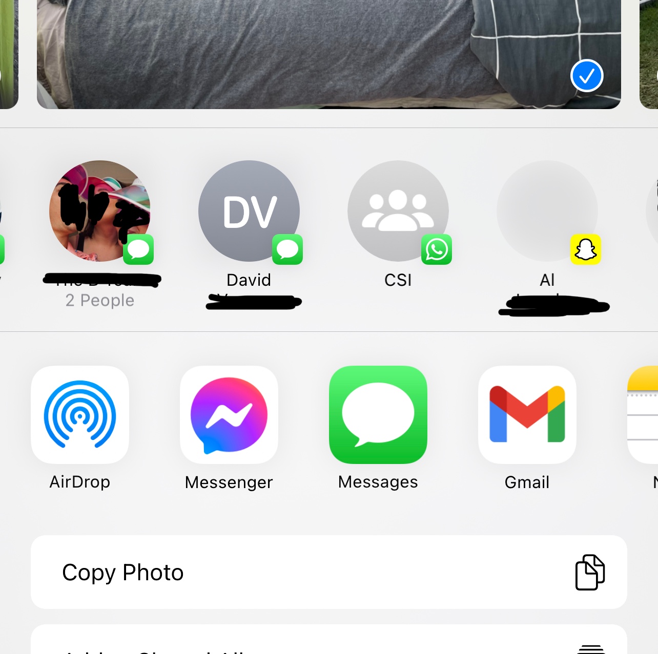 I was using my partner’s phone earlier today, and noticed that her iOS share sheet shows Messenger contacts in the top row. My share sheet shows WhatsApp groups, Snapchat contacts, Messages contacts etc - but no Facebook messenger.