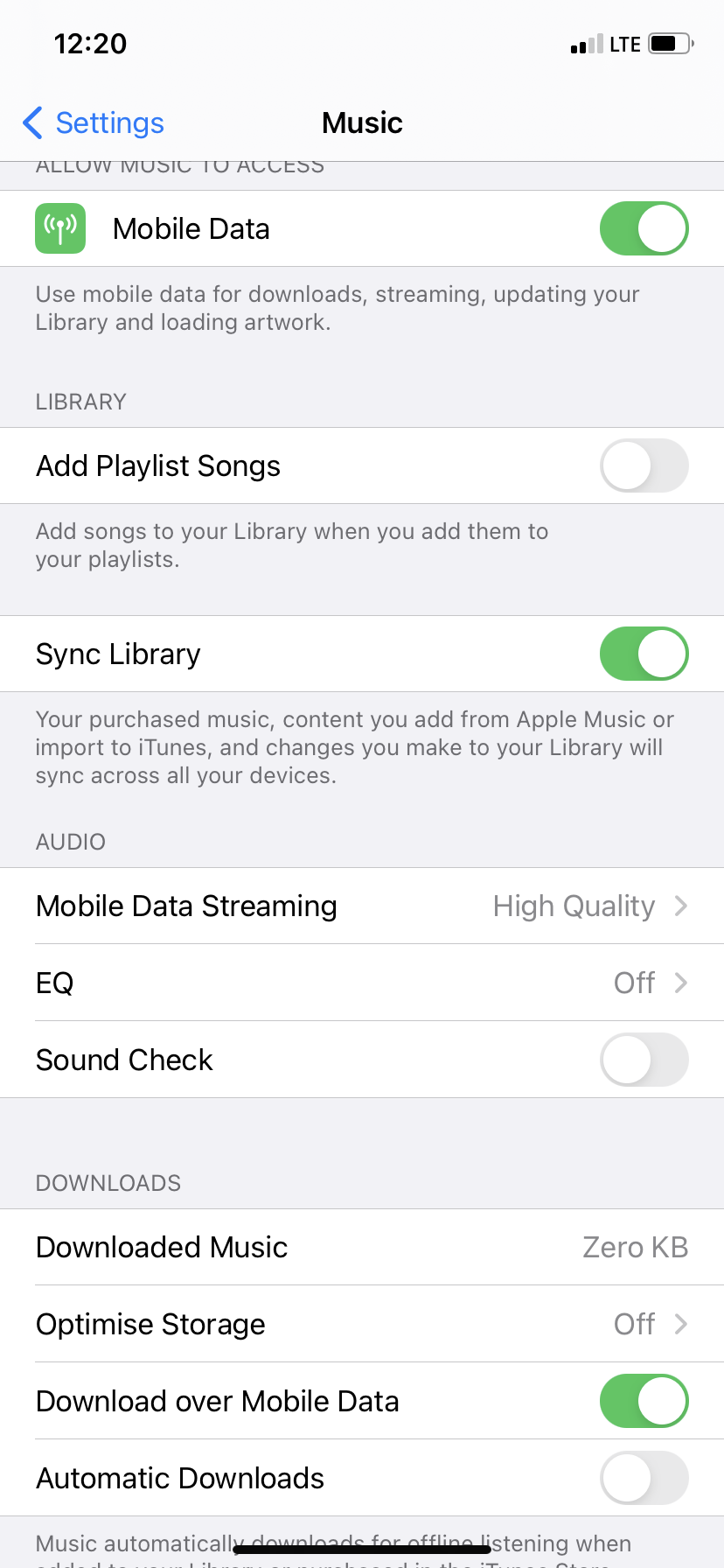 I am not able to access lossless music settings on my iphone