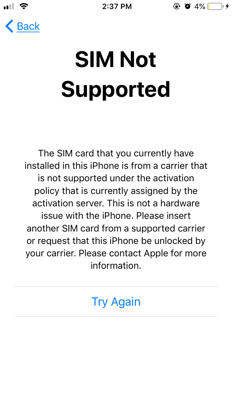 My iPhone is okay with my apple id. The only problem is I can't use any SIM with it. Whenever I insert a SIM into it, after a restart it says, activation required. And it says,