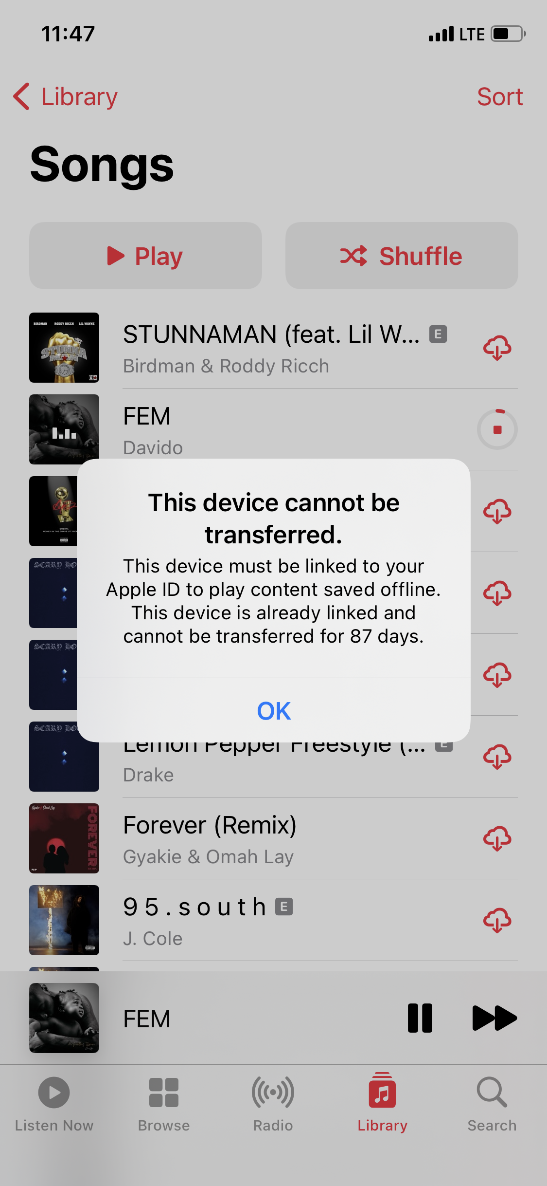 i can’t download Apple Music it’s keep telling me it remains 87days please help me ?