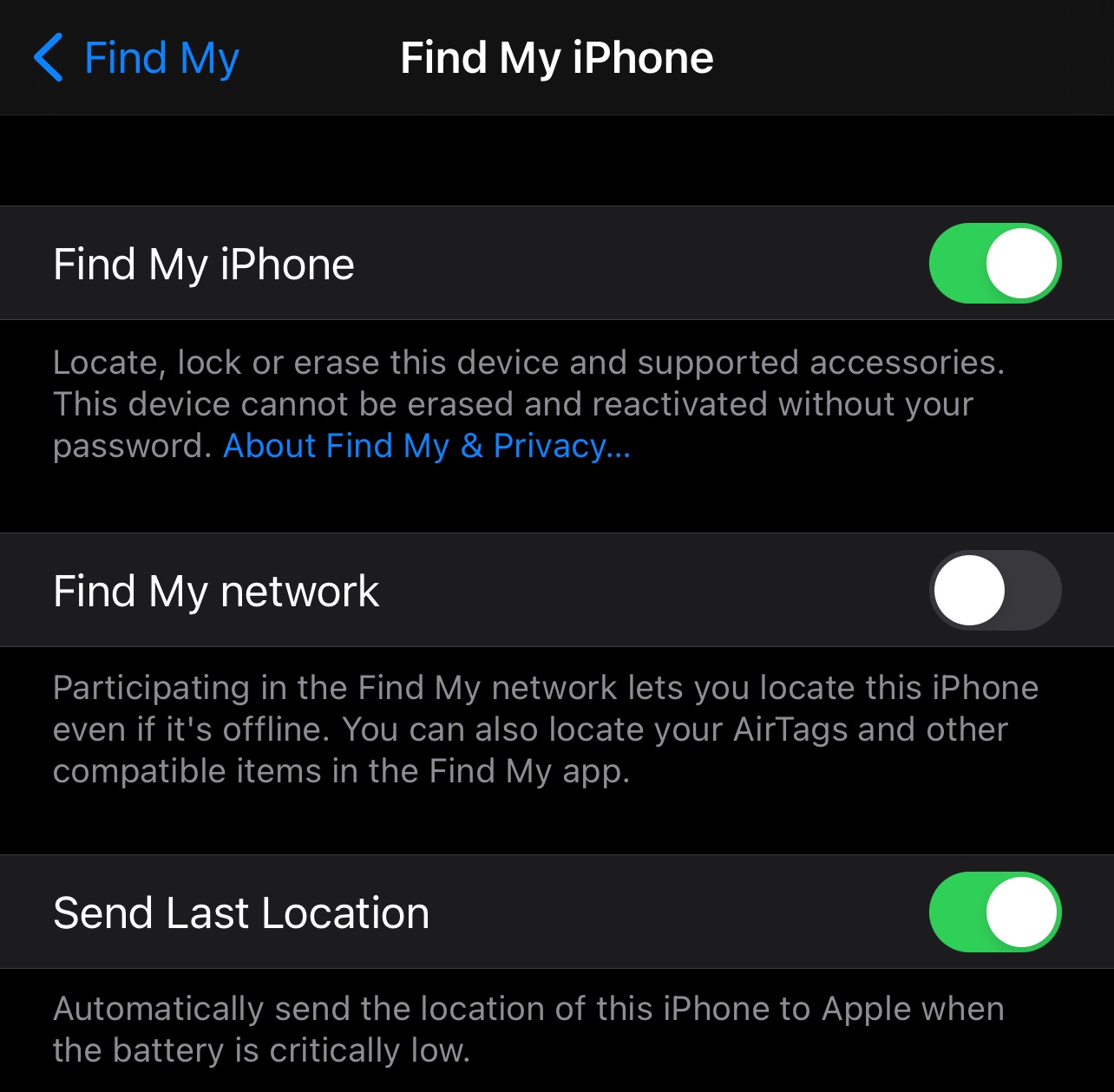 iOS 14.6 split these setting further by changing the name back to ‘Find My iPhone’ for the actual iPhone or iPad and keeping ‘Find My Network’ but now this setting controls the iOS device as a relay for AirTags and with more accuracy for devices that have U1 chips (iPhone 11 and above) which is why everyone’s battery is taking a noticeable hit, the Bluetooth and U1 chip are constantly pinging to support the Find My network for Apple and this setting is on by default