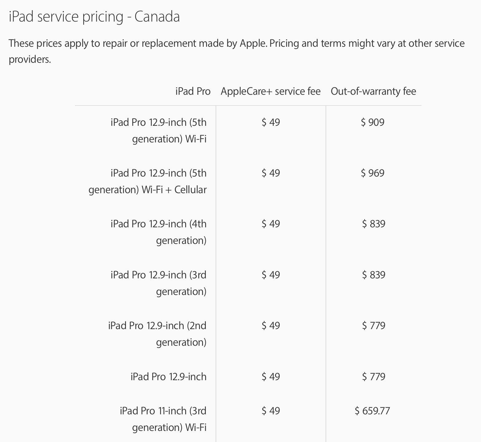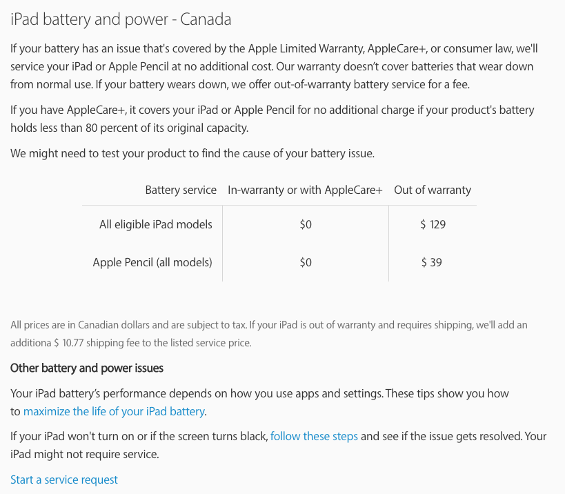 I have a iPad Air 2 and the battery is recently draining down faster than usual, I'm wondering if the Battery replacement fee comes with the Service Out-Of-Warranty Fee. Link to the Page: https://support.apple.com/en-ca/ipad/repair/service