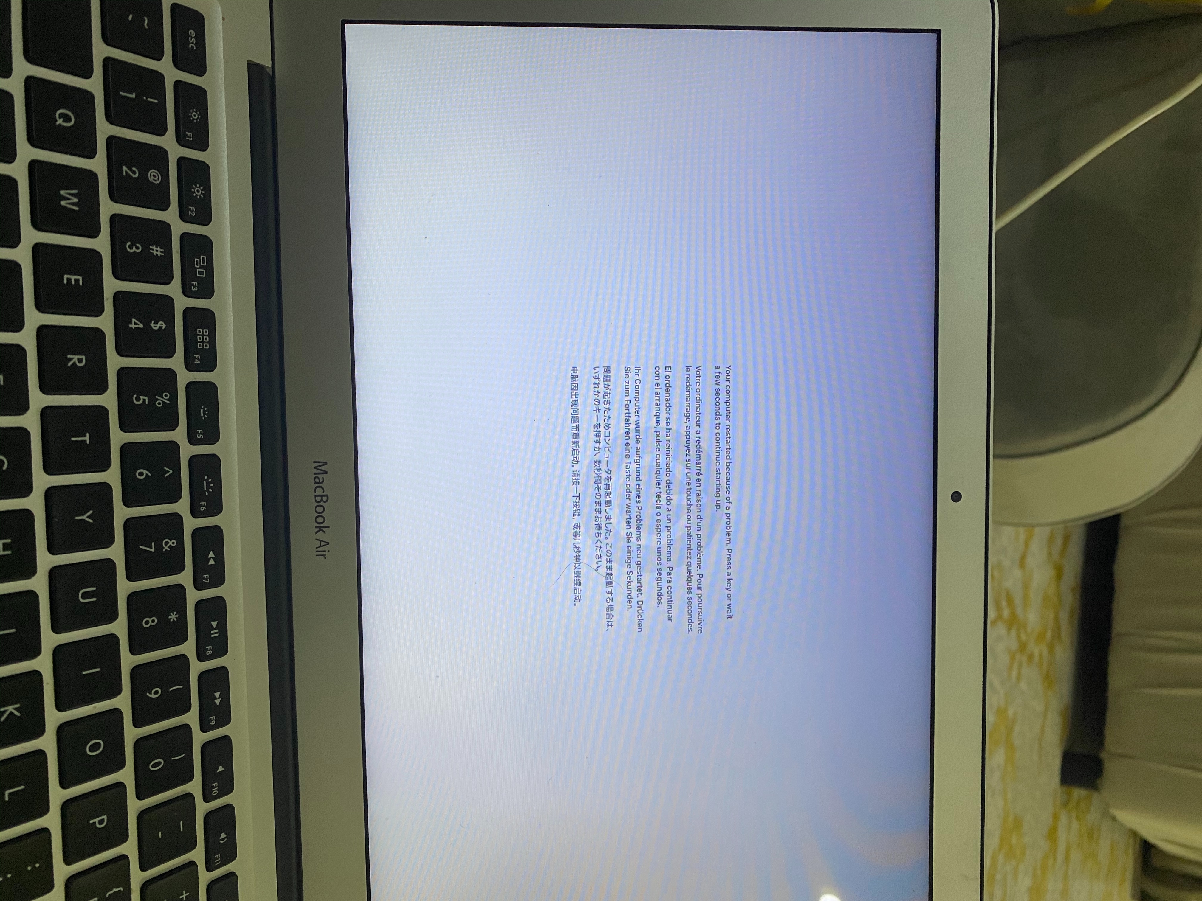 Your computer restarted because of a problem. Press a key or wait a few seconds to continue starting up.