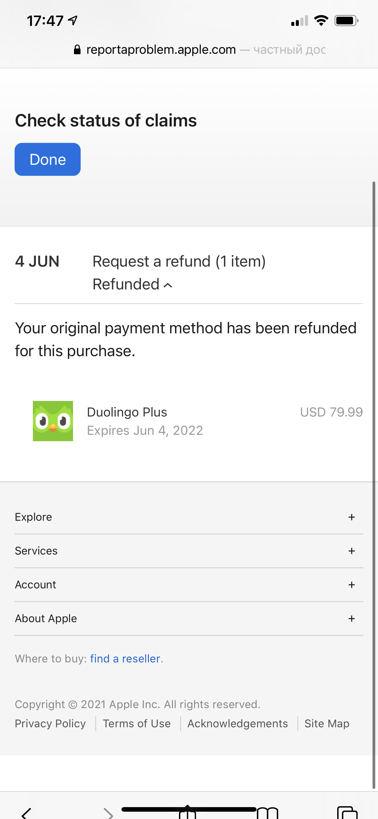 I bought an application, from my card account was charged amount and after 5 minutes I asked to cancel subscription and to refund money to my credit card. Apple support has approved my request but steel this amount is blocked on my account. So, i called support center to my financial institution, but they told me that i need a confirmation from apple that they have canceled this payment so my bank could unblock this amount. Does anyone know how do i get this confirmation from Apples?