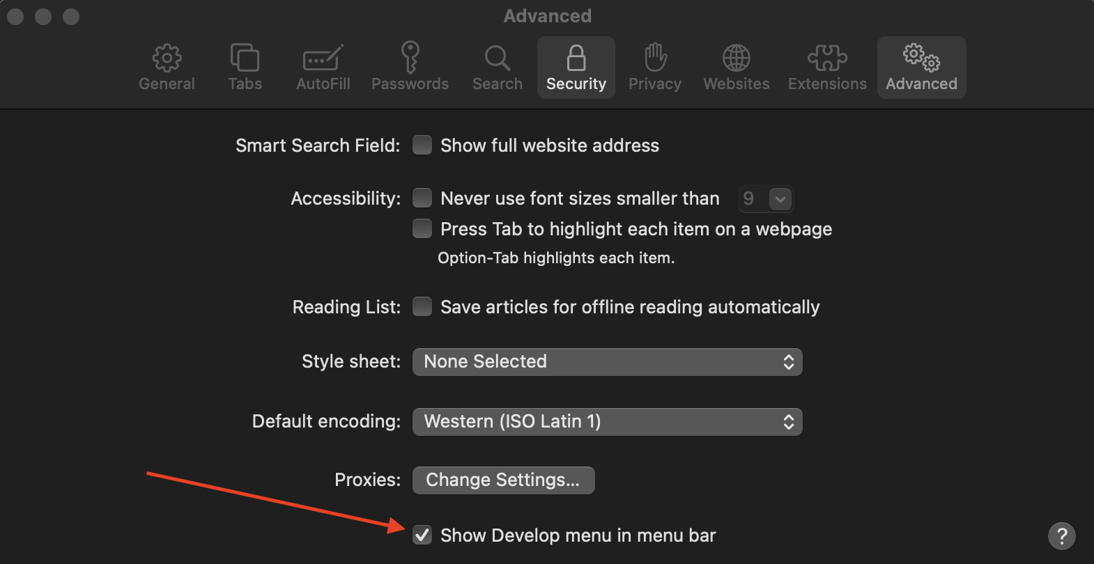 Go to Safari -> Preferences -> check "Show Develop menu in menu bar".