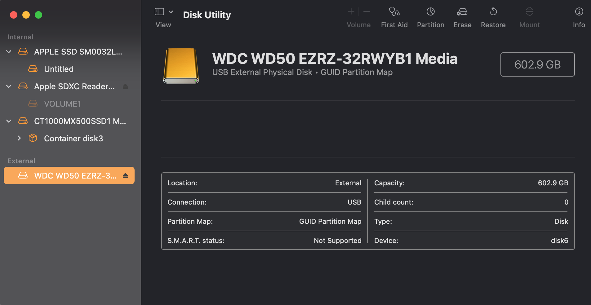 I have this 5TB hard drive that I will use only now and then, so not often or on an everyday basis. Now, I haven't used it since before the update of Big Sur but today it started not showing up. I went into disk utility to see what the problem was but I noticed only the disk came up, the volume wasn't showing up at all. If anyone can guide me on how to make the volume appear again, I'd appreciate itAs you can see, only the disk is showing up