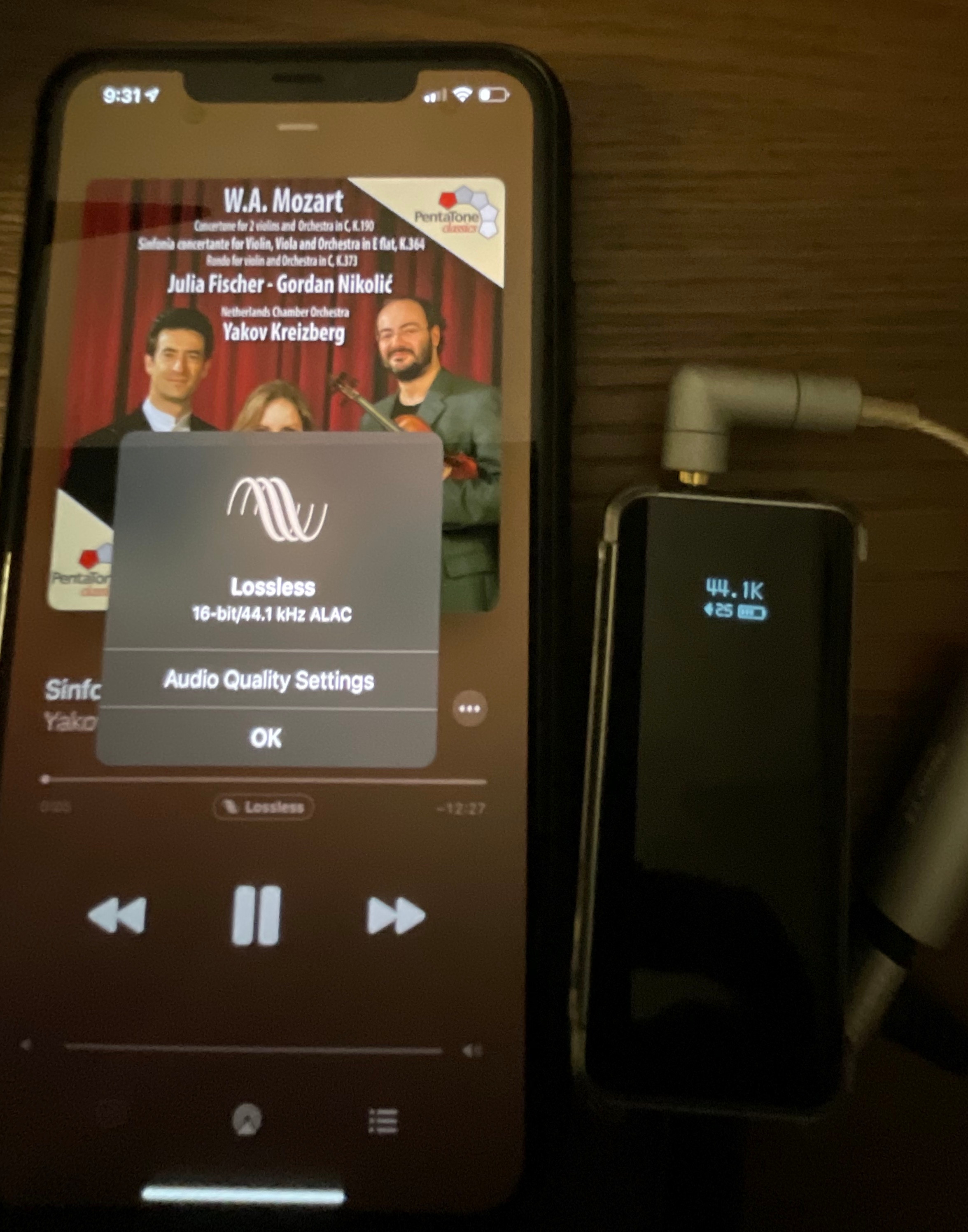 Then I switched to a different album Mozart: Sinofonia Concertante K.364 by Yakov Kreizberg, which is lossless only, my DAC will display 44.1.