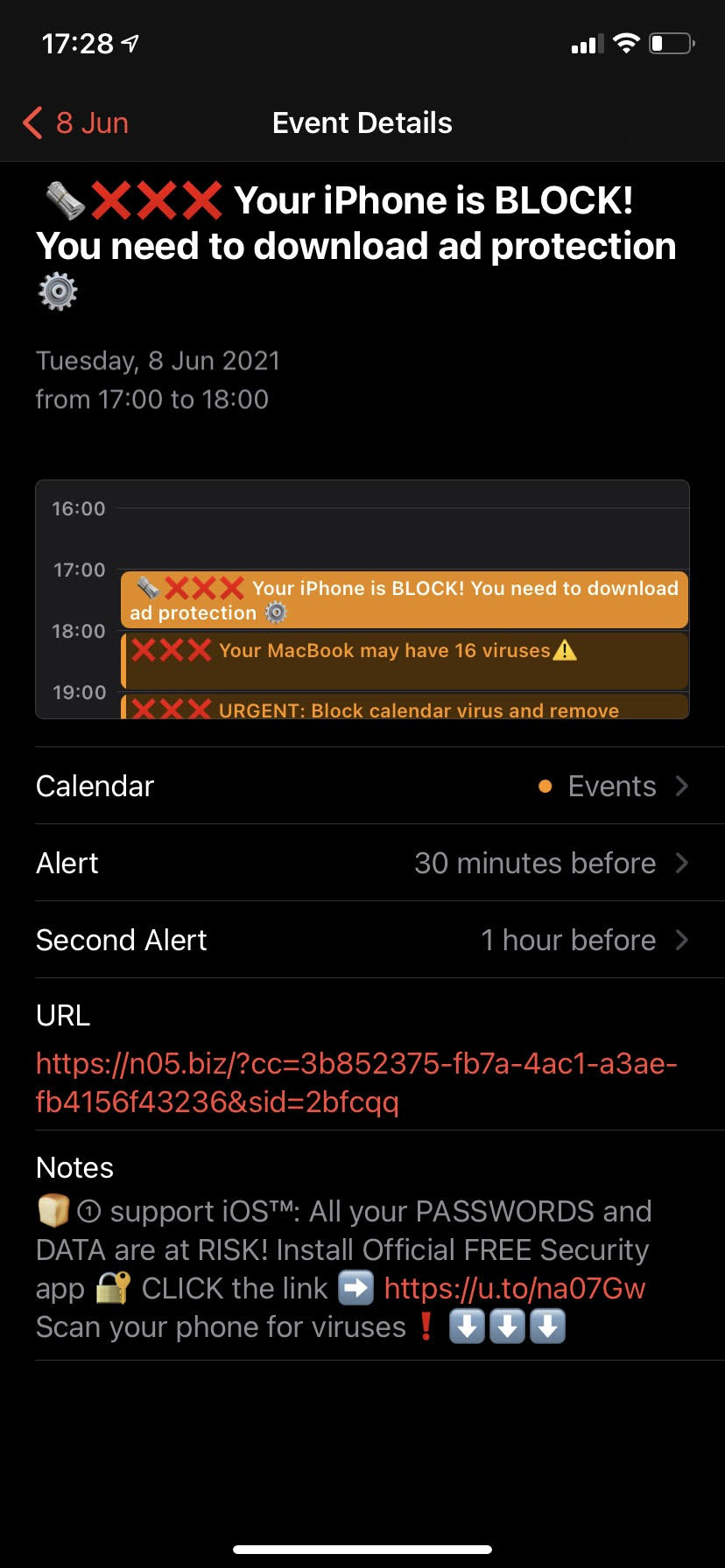 How to remove iPhone Calendar virus spam offers illustrations.