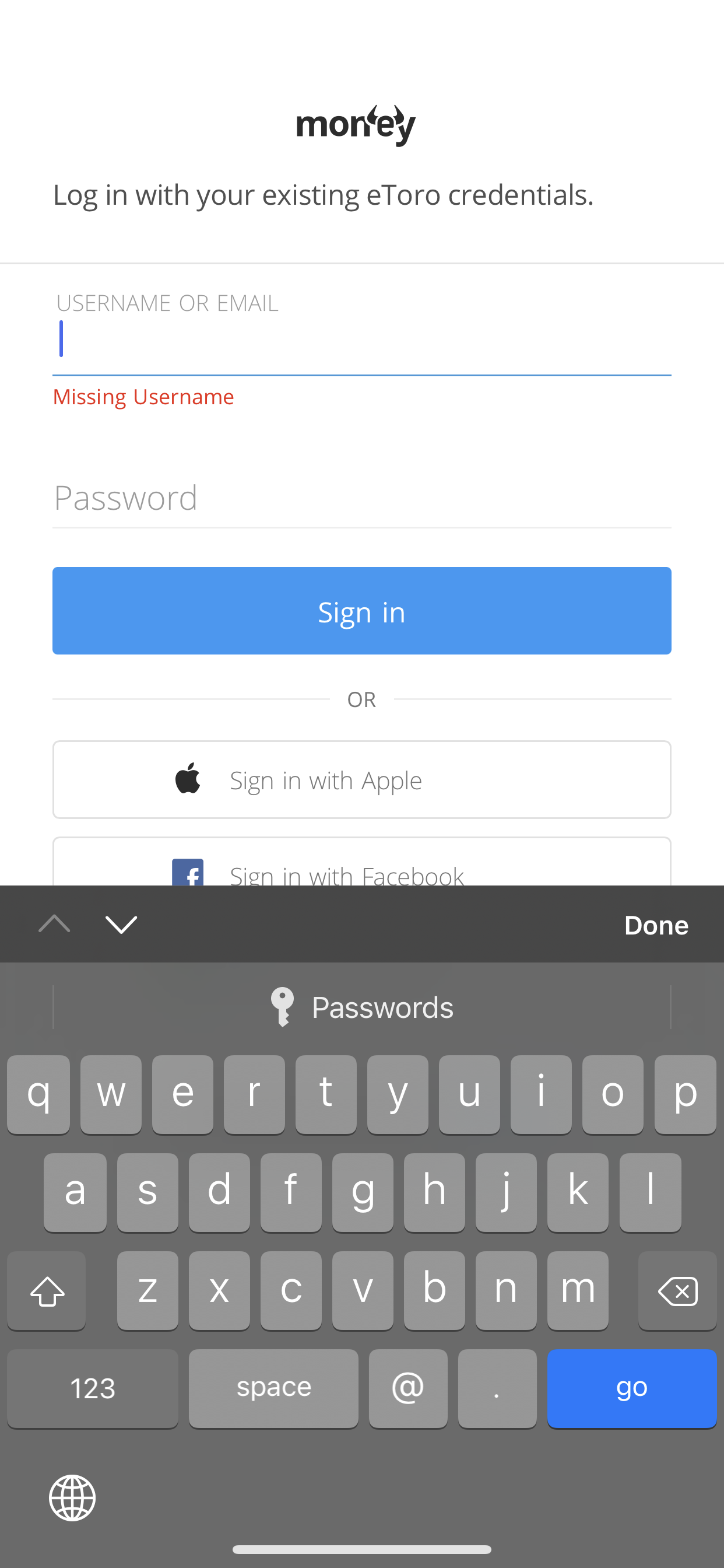 when I use the original main EToro app, my phone knows which username and password is linked to that app and suggests that I use it to log in. It’s nice and slick and requires 1 click.