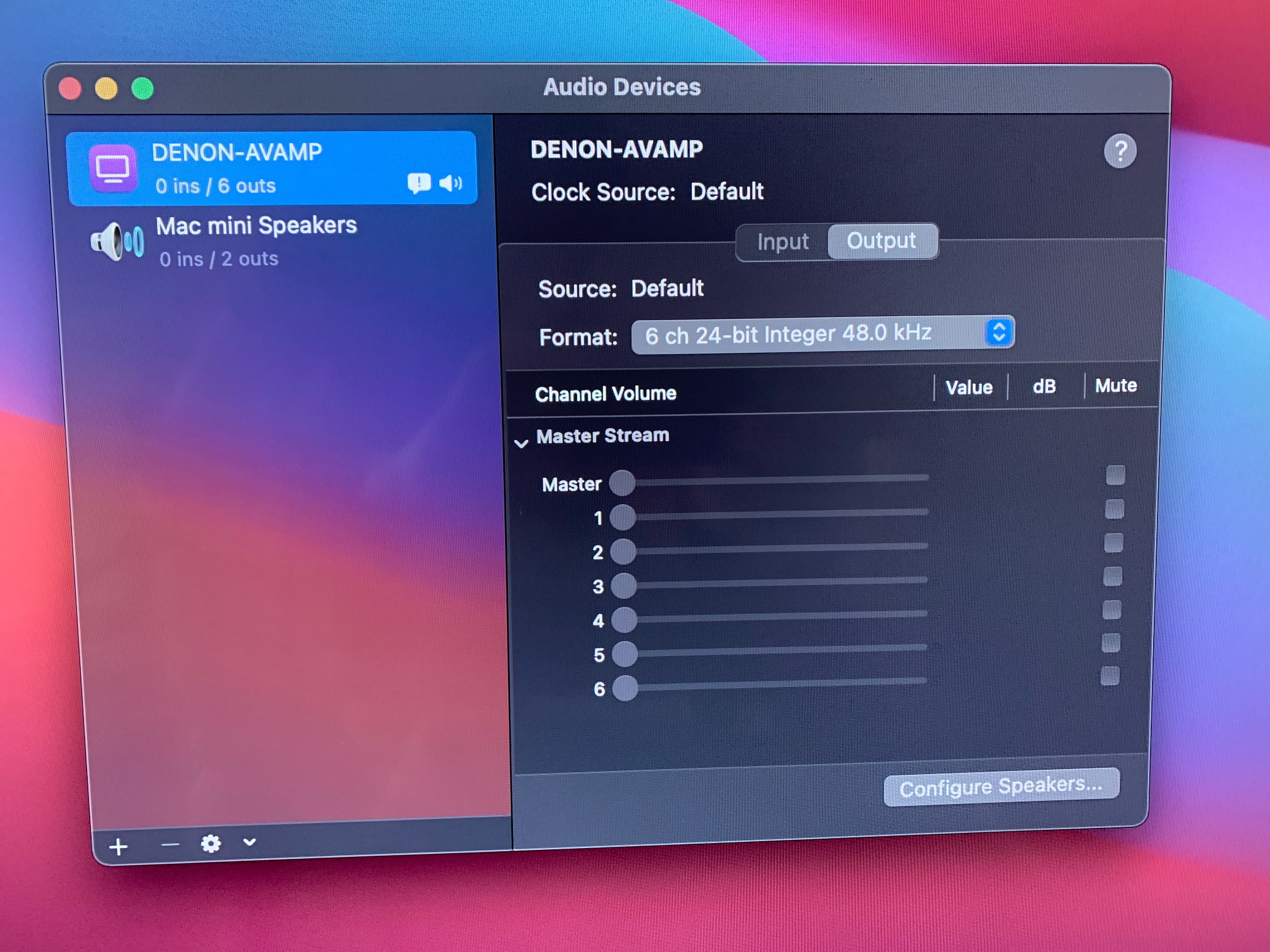 Hi my new Mac Mini M1 won’t output 5 channels properly. It’s connected to a Denon amp via HDMI and then the amp is HDMI to the tv.