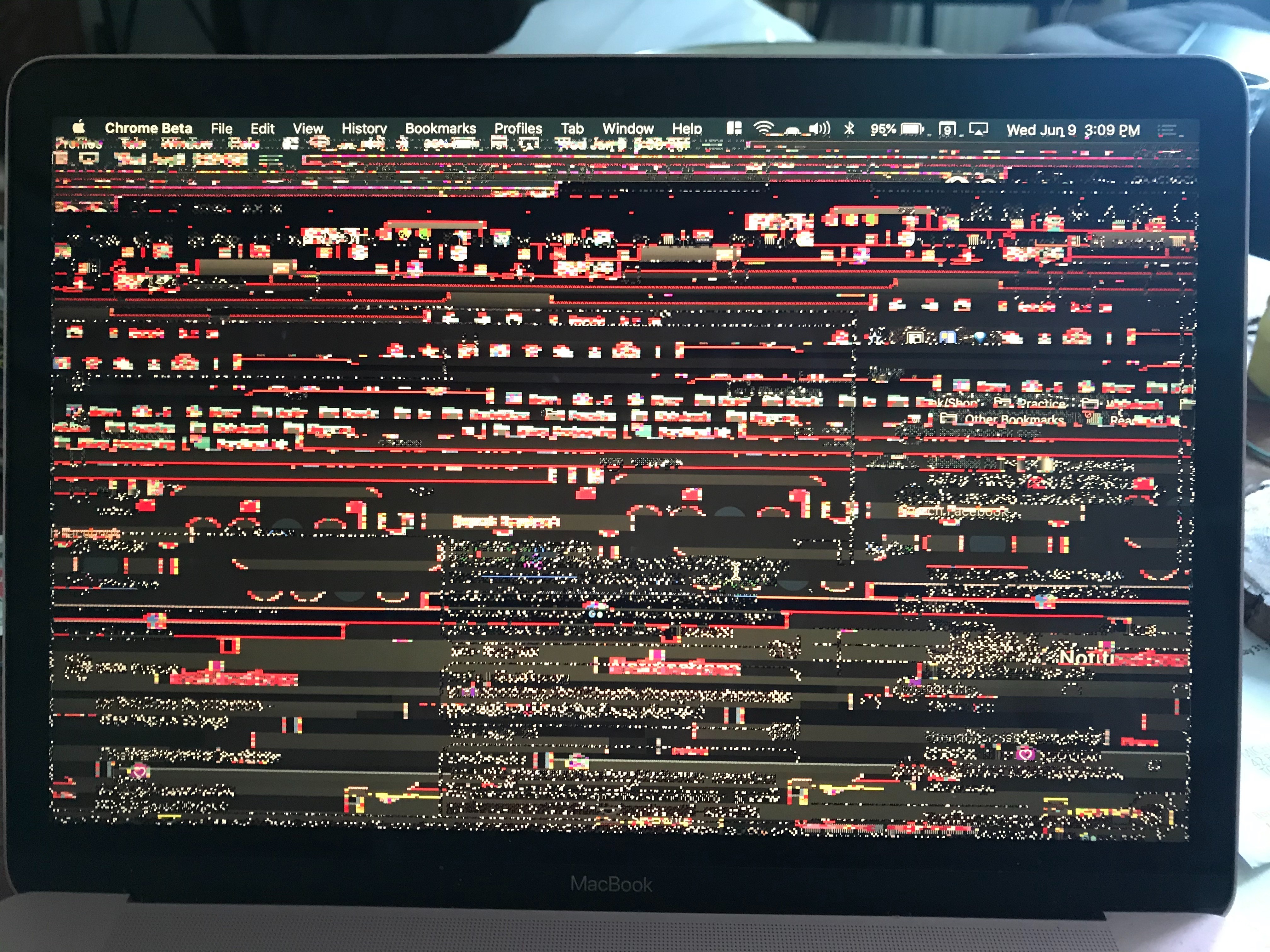 Any ideas why my 2017 12" MacBook is doing this? It seems to be triggered by some websites? Or maybe just random, I'm unsure. When I restart, screen is normal again, so I don't think it's a hardware issue. Sometimes it will resolve on its own, but usually I have to restart. I'm running MacOS Mojave (don't want to upgrade to Catalina if I can possibly avoid it).