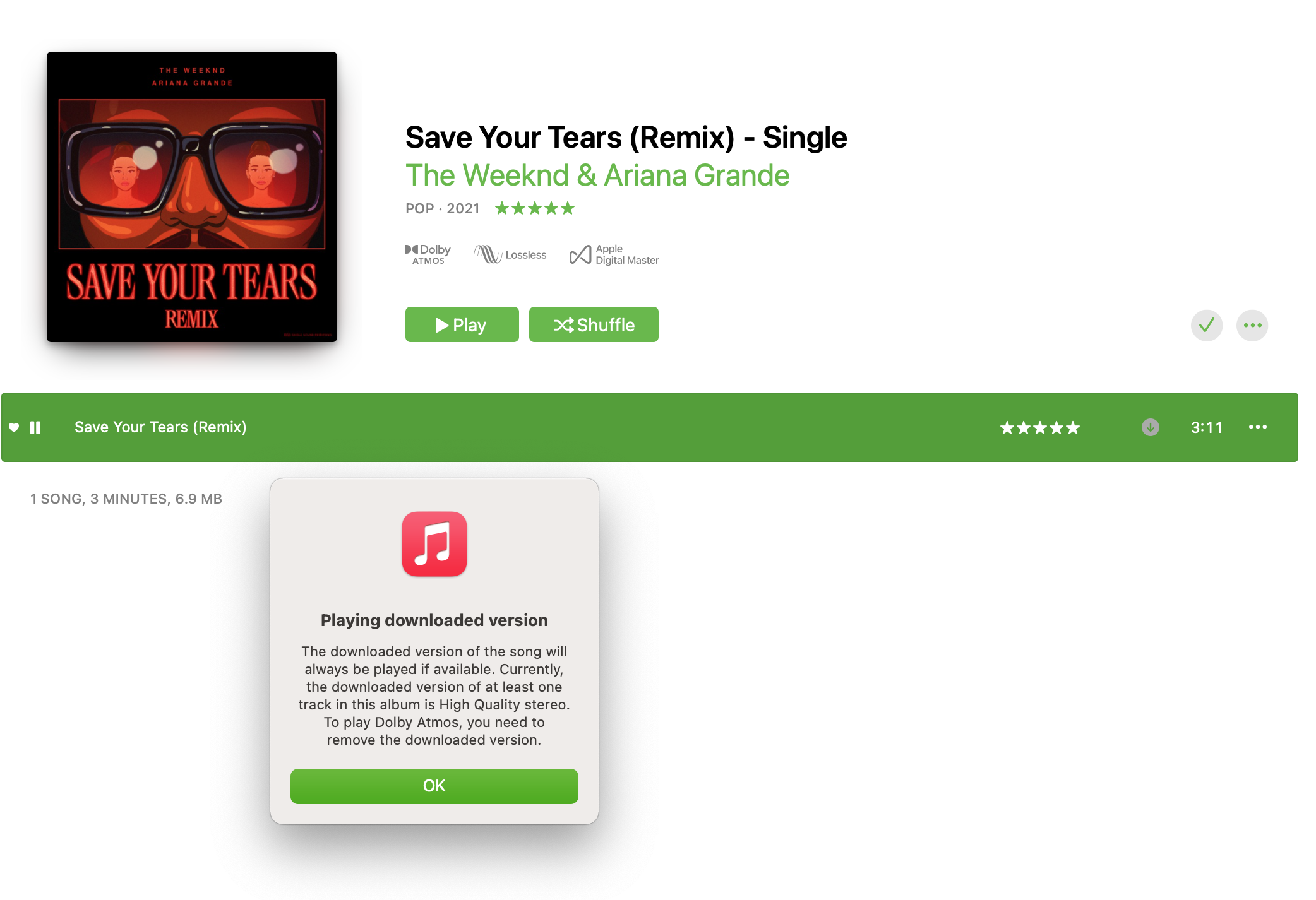 Dolby Atmos not available for previously matched and downloaded song
