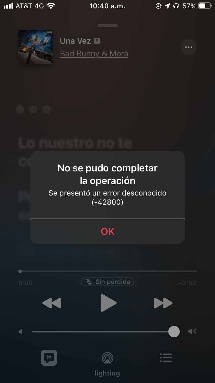 Bueno, bien se sabe que este error solo aparece cuando tienes las opciones de lossless y dolby atmos activas para las canciones, desde Apple Music en configuración.