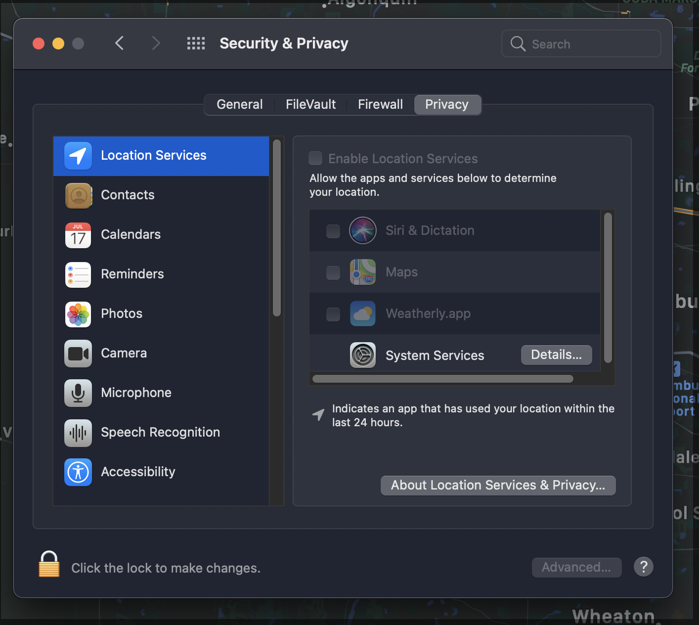 Thanks. I don't install apps that fall directly under those categories but I did delete CCC (never used on my latest iMac), LastPass, TG Pro, Weatherly, Canon Camera Apps, Photos Extensions and a few others, restarting each time to see if Location Services stayed on but nothing changed.