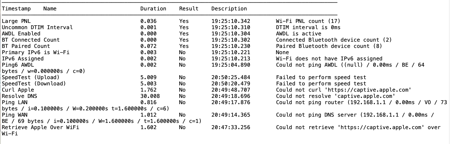 I ran another diagnostic today and poked around in the folder where these files are stored. I found a file called (SSID)-diagnostics.txt.