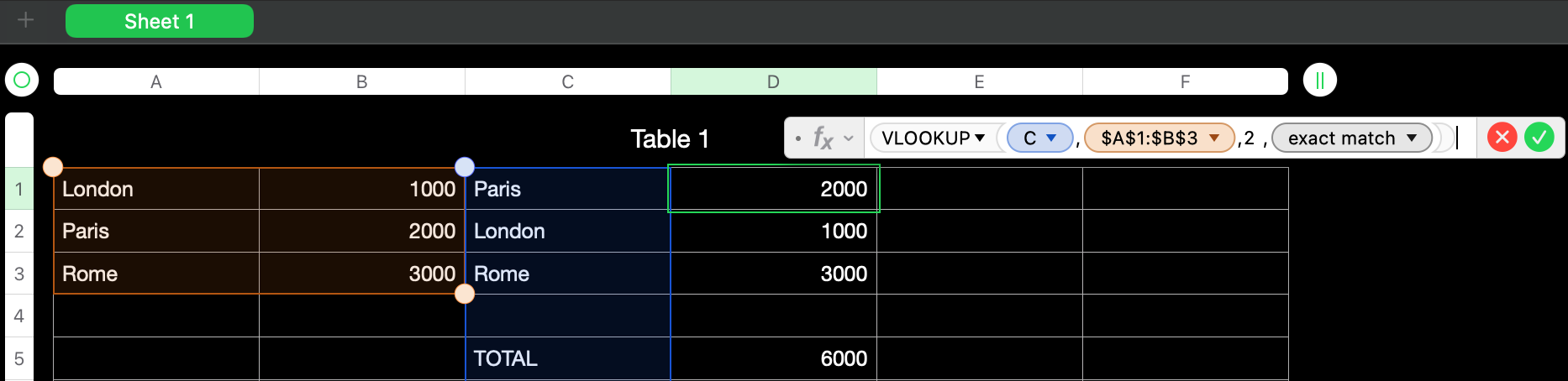 Now let's enter the formula to perform the lookup. Select cell D2 in table "Table 2"