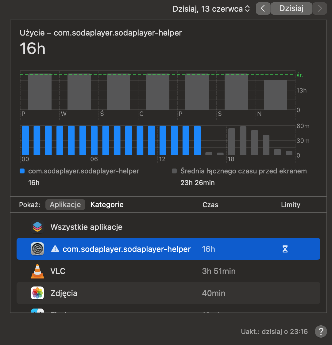 I uninstalled Soda Player from my Mac few days ago. Then I found out that the program/file named "com.sodaplayer.sodaplayer-helper" has been constantly working in the background for many days by far (screen attached). I got a bit scared cause I have a bit of OCD regarding my privacy and spying apps. Obviously it drains the battery as well. I tried to Spotlight search it, but haven't received any results.