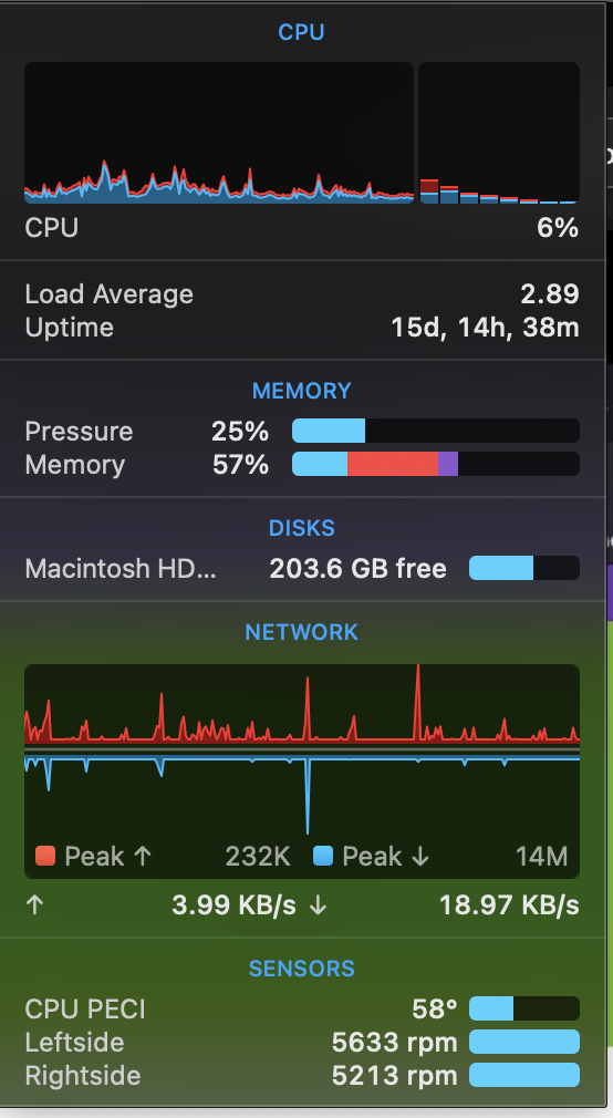 You can see there's barely any load on CPU or GPU and the fans are spinning at crazy high speeds hence the noise becomes inevitable. Let's keep graphic intensive work aside, while just surfing the web, the fans kick-in as per their wish in light usage and go crazy. If I'm on Zoom or Ms Teams for meeting the fan noise disturbs the other participants (let alone myself who's annoyed by it to the end) in meeting and there's nothing I can do about it. It's really irritating and annoying that my MacBook Pro Mid 2012 almost a decade old machine and I put it under same circumstances and that handles the fans pretty well unlike this 16" machine. Being an avid Apple fan since forever and knowing how their devices always just works but this one after spending a hefty amount has such an annoying issue that Apple doesn't care enough to address