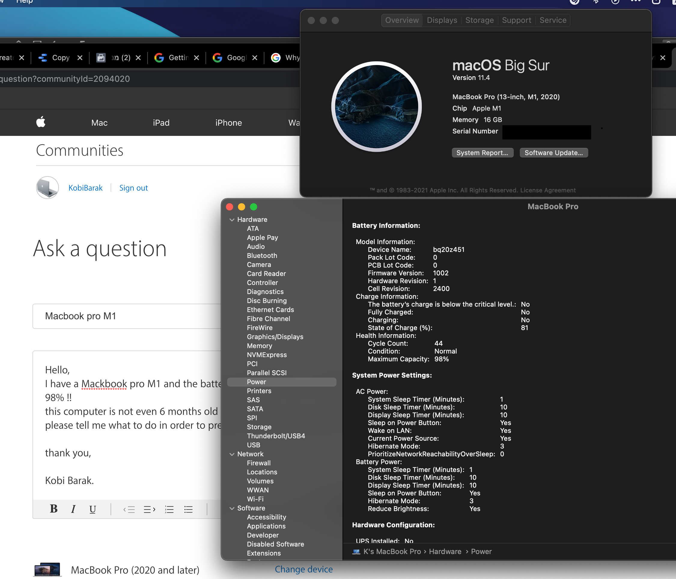 I have a Mackbook pro M1 and the battery charge cycle is on 44 but my battery Maximum Capacity is 98% !!